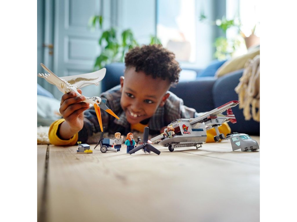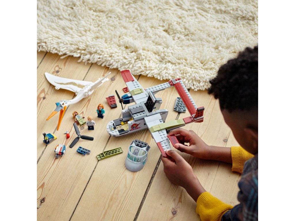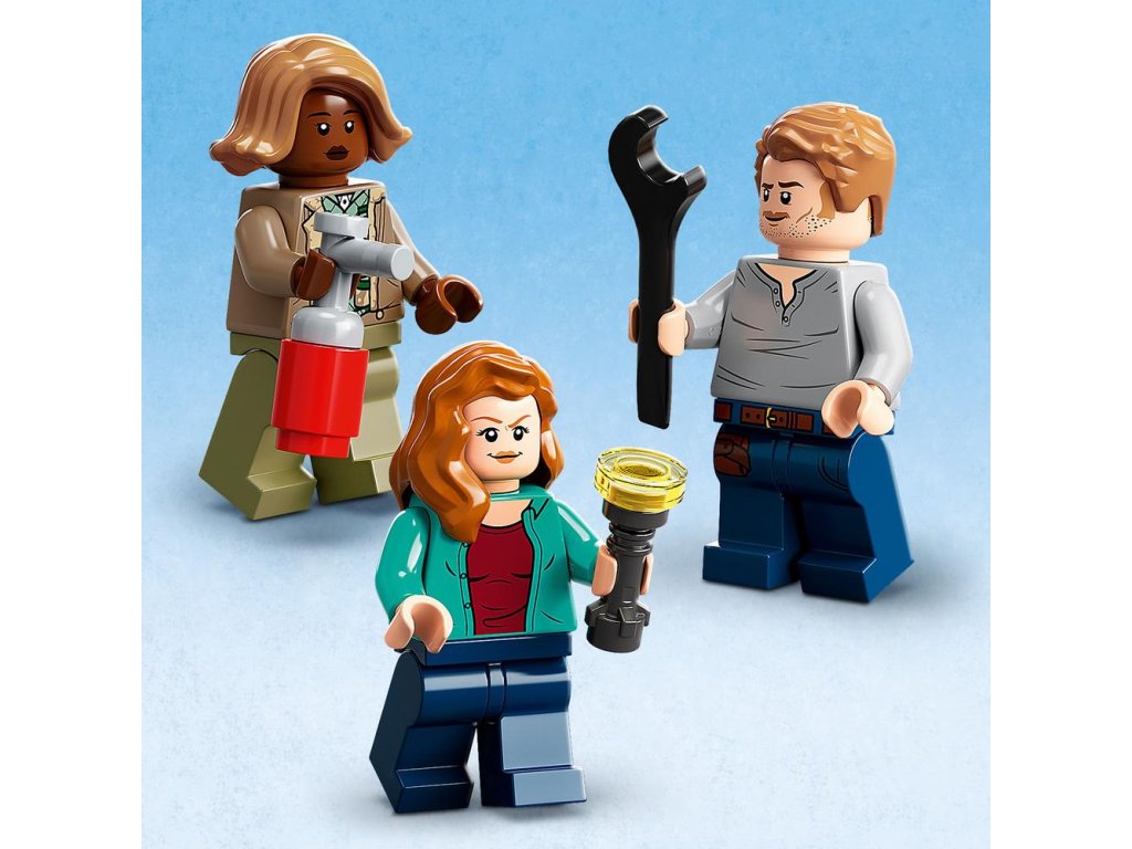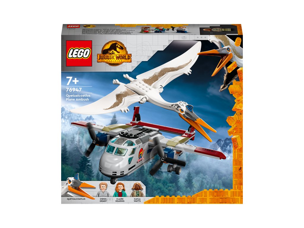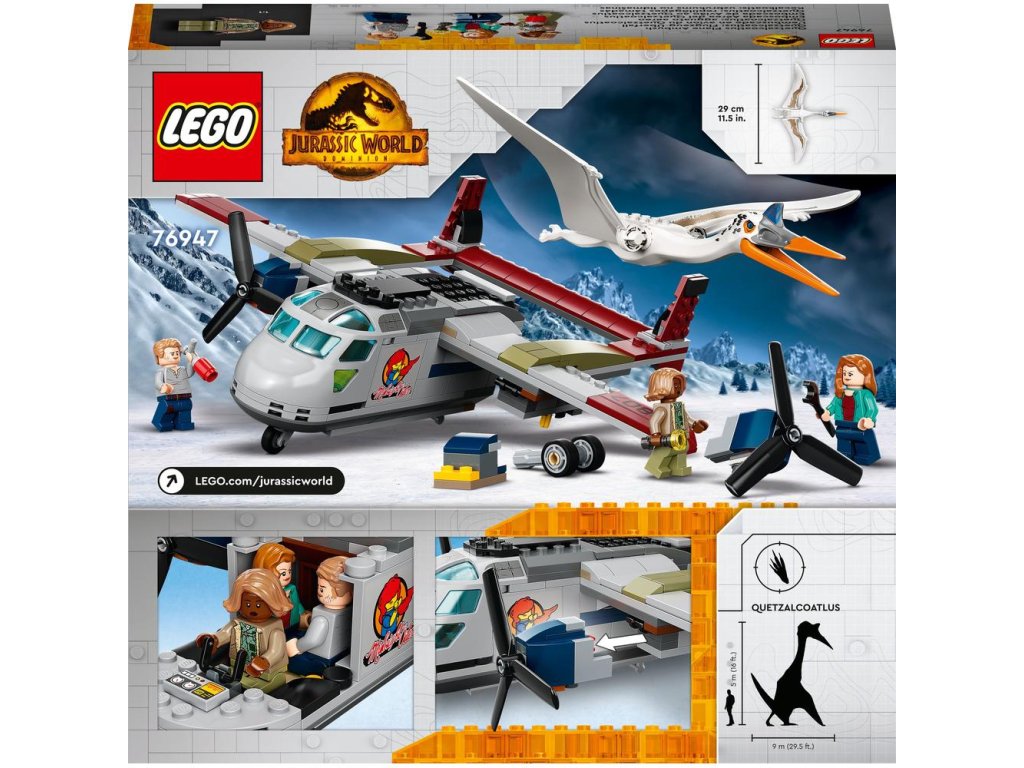 - 3 minifigúrky a figúrka pterosaura – s minifigúrkami Owena Gradyho, Claire Dearingovej a Kayly Wattsovej. Quetzalcoatlus meria vyše 29 cm na šírku a má pohyblivé krídla a zobák, ktorý dokáže ublížiť