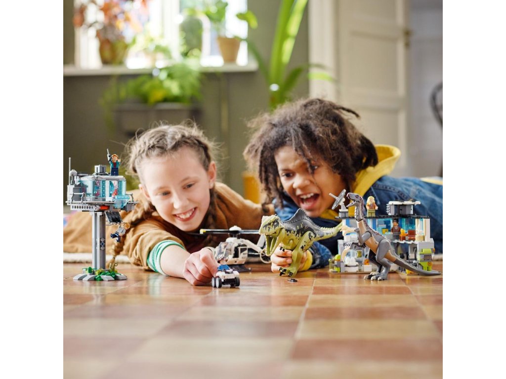 - Bojová stavebnica s dinosaurami – deti môžu so stavebnicou LEGO® Jurassic World Útok giganotosaura a Therizinosaura (76949) zvádzať súboj s dinosaurami a zažiť akciu ako vystrihnúť z filmu Jurský svet Nadvláda