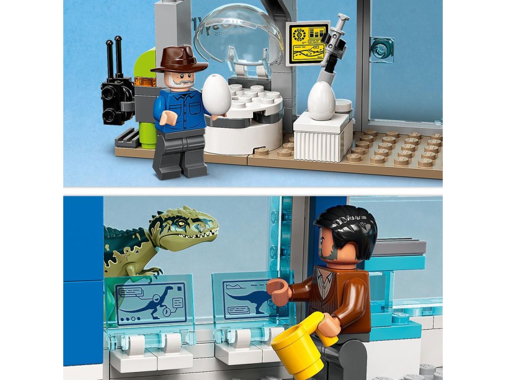 - Stavajte a spájajte – laboratórium meria vyše 16 cm na výšku, 21 cm na dĺžku a 16 cm do hĺbky. Celý set sa dá spojiť s inými stavebnicami zo série LEGO® Jurassic World pre ešte viac herných možností