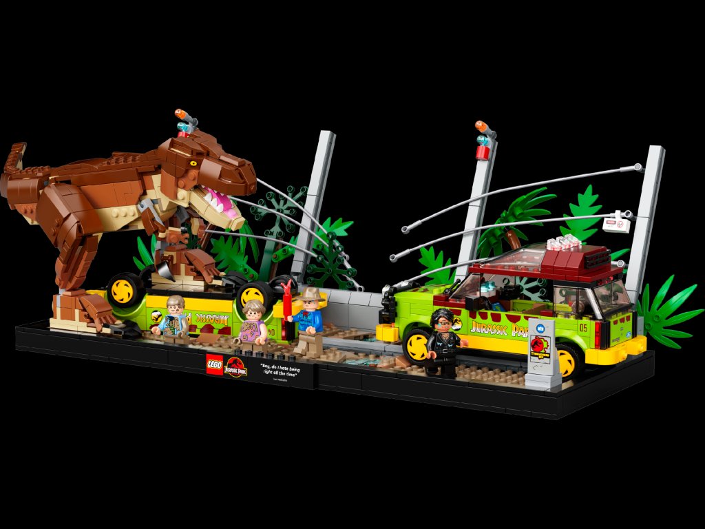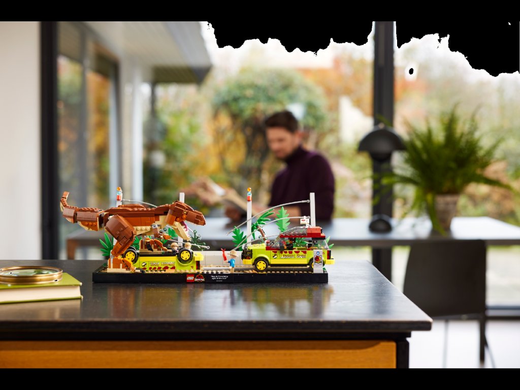Chcete zinscenovať vlastnú akciu? Tento výstavný model LEGO® Jurassic Park Útek T-rexa (76956) vás bude baviť opakovane, presne ako pozeranie epickej scény z Jurského parku, ktorá ho inšpirovala. Súčasťou je pohyblivá figúrka T-rexa, ktorý šliape na prevrátený a rozbitý Ford Explorer, druhý Ford Explorer a rozmlátený „elektrický“ plot. Prežite dramatické chvíle s minifigúrkami Alana Granta, Iana Malcolma, Tima Murphyho a Lex Murphyovej, okuliarmi na nočné videnie, svetlice, 2 poháre a ďalšie doplnky odkazujúce na túto slávnu scénu. Krásny darček Tento zberateľský model je skvelou odmenou pre vás alebo darčekom pre iných dospelých fanúšikov Jurského parku a skúsených staviteľov LEGO, ktorí majú radi dinosaury. Súčasťou je podrobný návod, vďaka ktorému si môžete odpočinúť a vydať sa na nostalgickú kreatívnu výpravu. Otvorte balenie a oddychujte Vitajte vo svete setov LEGO pre dospelých – v zóne zenu pr