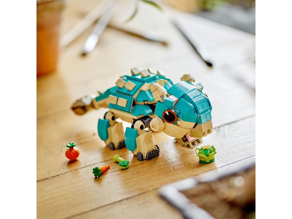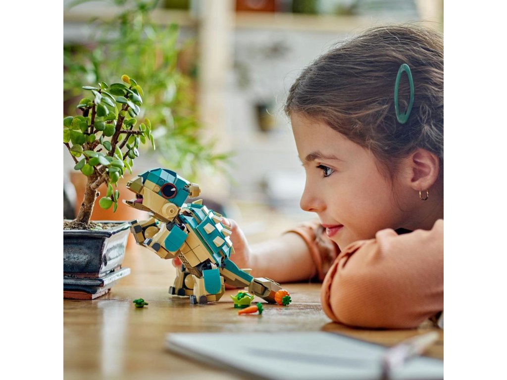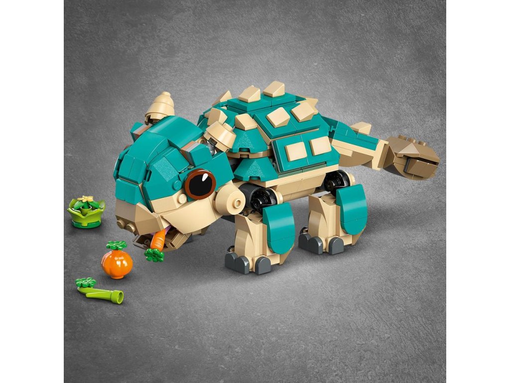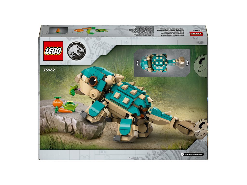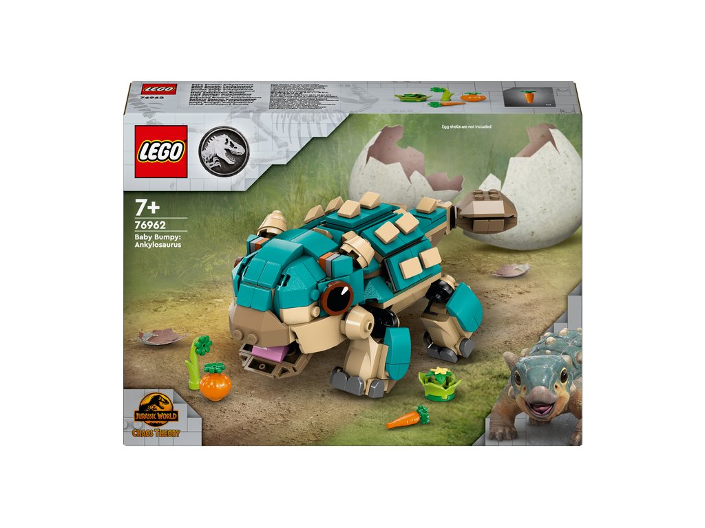 Inšpirujte fanúšikov televízneho seriálu Kriedový kemp hračkárskym modelom dinosaura Malá Bumpy: Ankylosaurus (76962) plným herných a výstavných možností. Najprv si mladí fanúšikovia dinosaurov od 7 rokov postavia stavebnicu zo série LEGO® Jurassic World a potom sa vrhnú do zábavného objavovania sveta spolu s Bumpy. Zvieracia figúrka má otváraciu čeľusť, chvost, ktorý sa vrtí, keď hýbe hlavou zo strany na stranu, kĺbové nohy a trošku zeleniny. Po skončení hry si zábavného dinosaura vystavte v rôznych dynamických pózach na poličke či na stole.