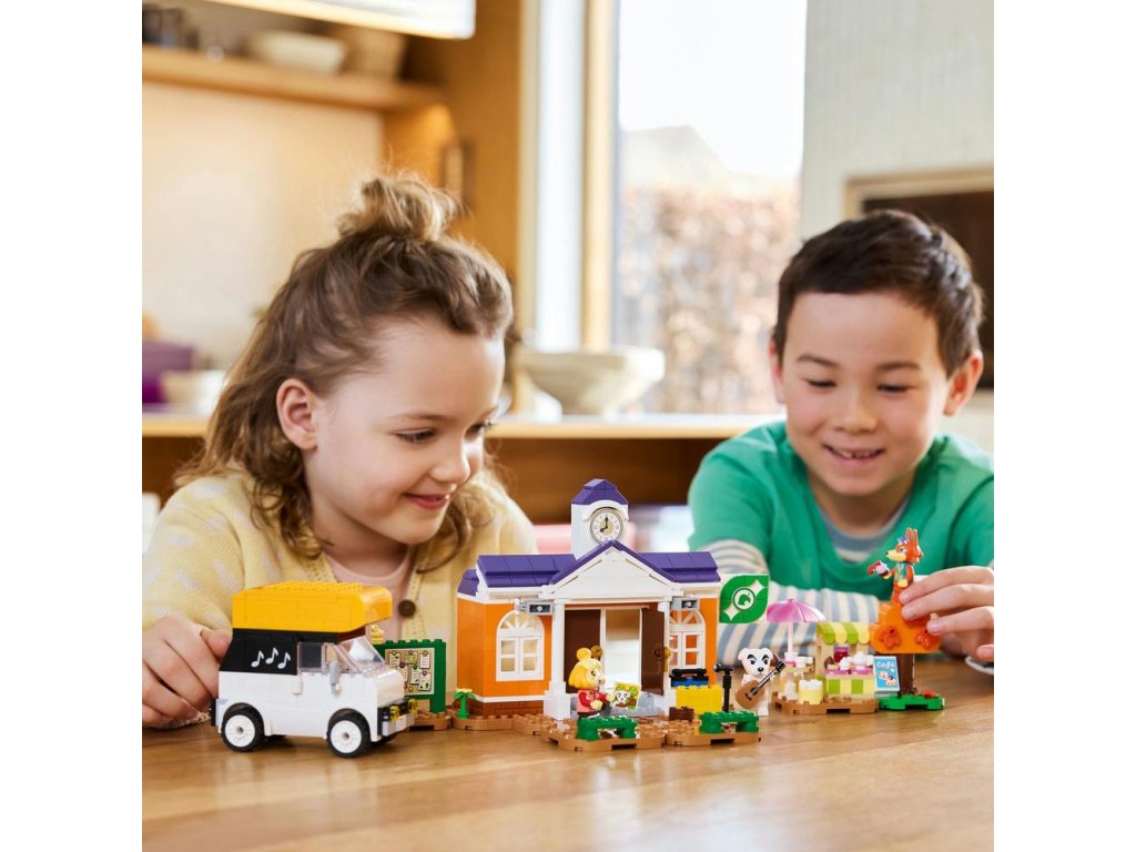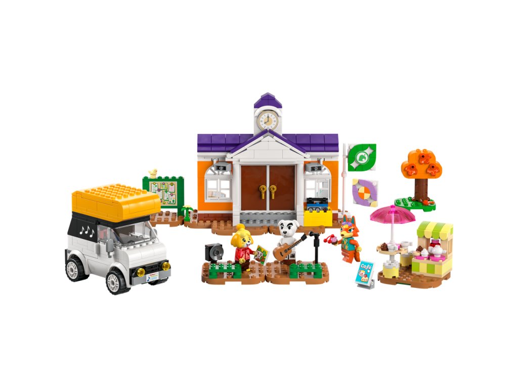 Deti sa pripravujú na koncert K.K. tak, že prinesú jeho hračkársky mikrofón zo strechy karavanu, hrajú sa, že hrajú na hračkárskej gitare, al ebo sa pridajú k Isabelle na spoločný strečing. Všetky novinky sa dozvedia v kaviarni s Audie a potom s ňou pôjdu do radnice, kde získajú kartičku s receptami, uplatnia si odmeny v bankomate a skontrolujú škatuľu s recyklovaním, či v nej nie sú nové veci. Rovnako ako vo videohre, aj v strome z kociek vás čaká prekvapenie a vlajku Resident Services si môžete upraviť podľa seba. Deti si takisto môžu preorganizovať podložky na stavanie a zmeniť tak vzhľad svojej stavebnice LEGO Animal Crossing.