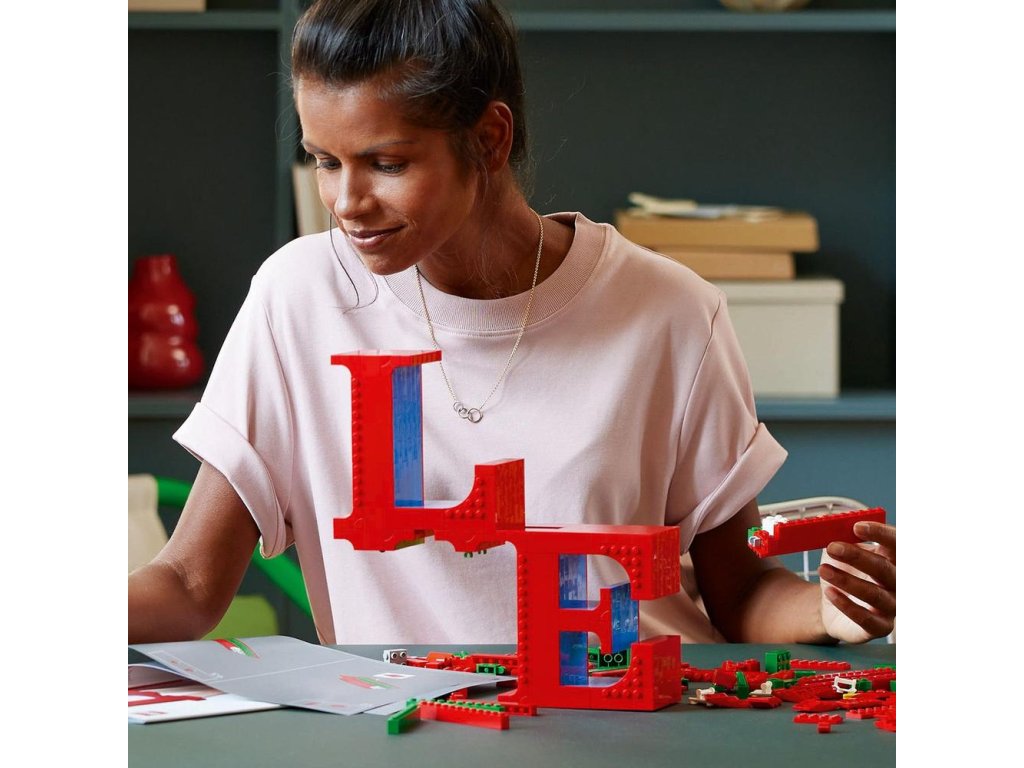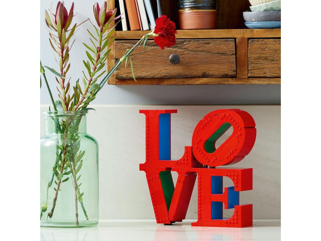 - Darčeková stavebnica pre zaľúbených – Vytvorte si vlastnú malú verziu slávnej sochy LOVE od Roberta Indianu s touto stavebnicou LEGO® Art pre dospelých