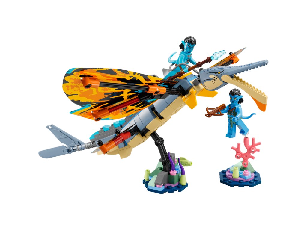 - Čo je v balení? – Všetko potrebné na postavenie figúrky skimwinga, ako aj minifigúrky Tonowari a Jakea Sullyho, koralový útes Pandory a výstavný podstavec