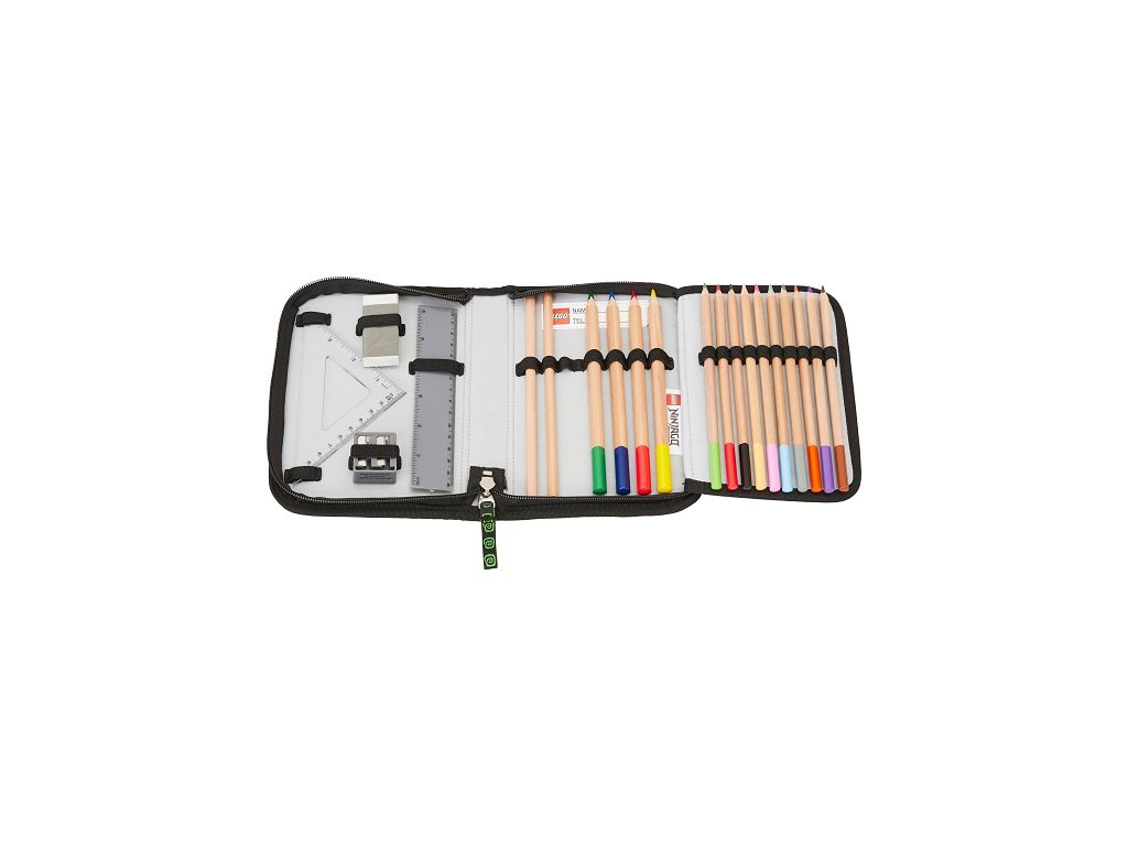 Puzdro je dodávané s náplňou: 2 grafitové ceruzky, 10 farebných pasteliek, 4 široké farebné pastelky, guma na gumovanie, strúhadlo, rovné a trojuholníkové pravítko. Puzdro obsahuje rozvrh hodín v priehľadnom vrecku a všitú vnútornú menovku. Je vyrobené z odolného materiálu bez použitia PVC. K dostaniu v mnohých obľúbených LEGO motívoch. Ideálny pre prvý ročník základnej školy.
