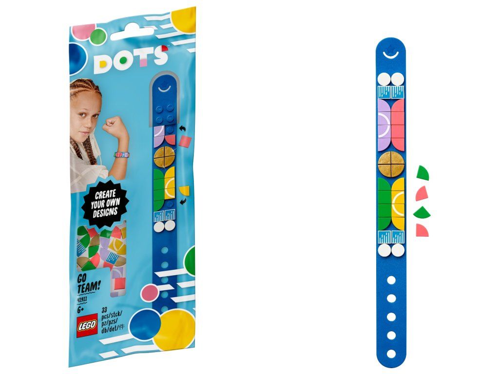 - Podporovaná láska svojho dieťaťa k vlastnoručnej výrobe touto odvážnou súpravou na výrobu náramku pre športovcov (41911) zo série LEGO® DOTS, ktorá obsahuje základný prispôsobiteľný náramok a 32 farebných zdobení. Do hier sa môžete pustiť ihneď po rozbalení!