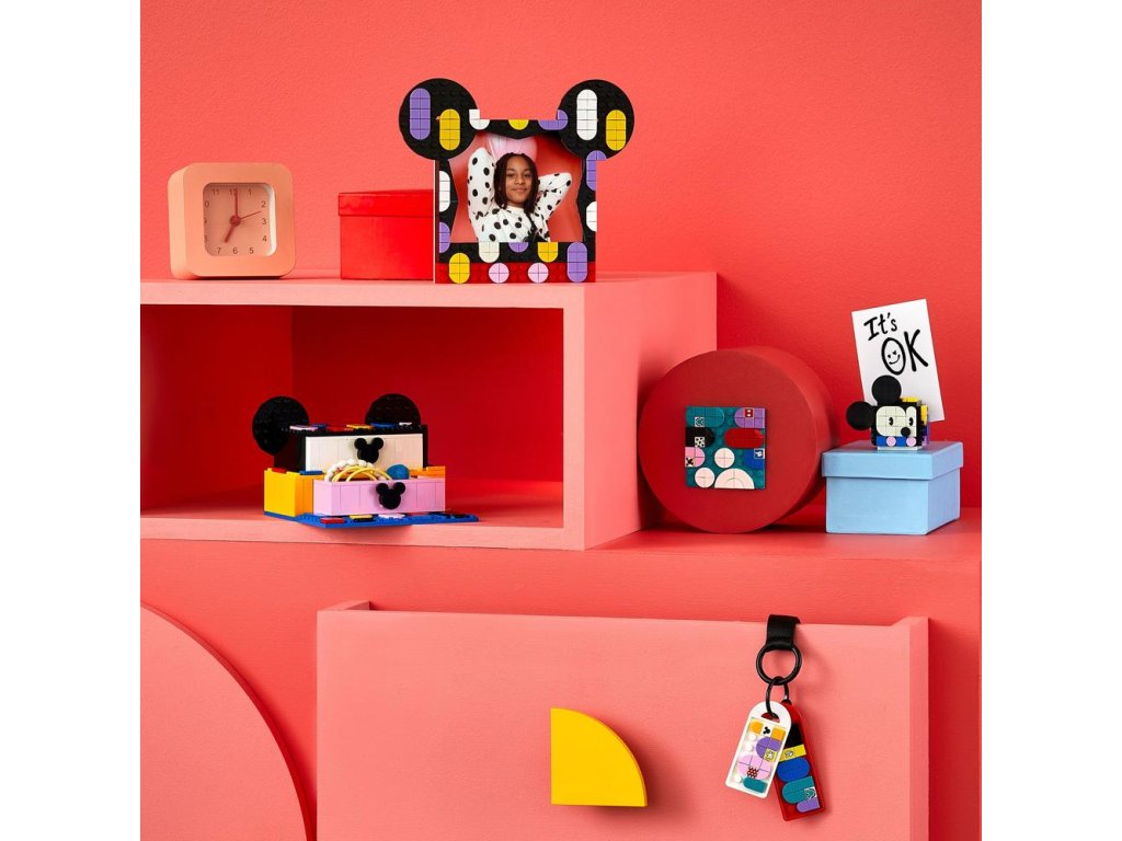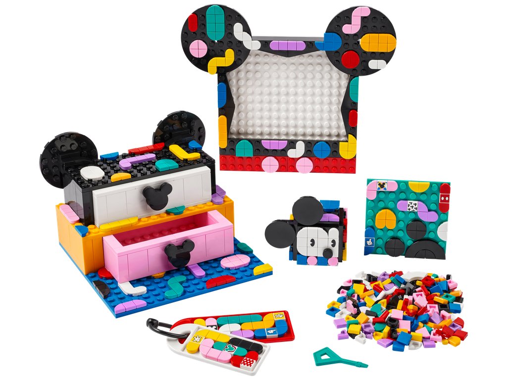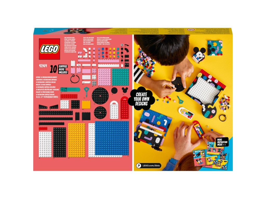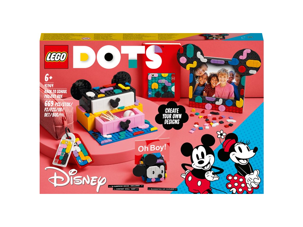 - Tvorte, zdobte, určenú – Okúzlite každé trendy dieťa alebo milovníka tvorby touto sadou LEGO® DOTS ǀ Disney Školský boxík Myšiak Mickey a Myška Minnie (41964). Tvorivá zábava začína už po otvorení roku