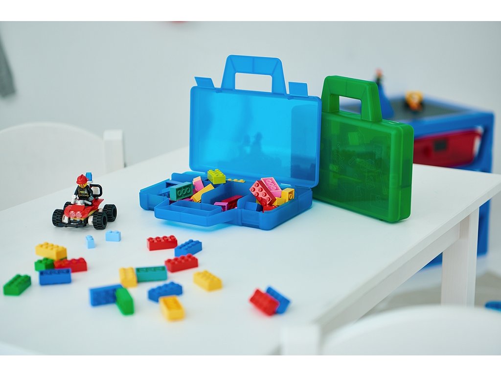 Vďaka úložnému boxu TO-GO sa môžete vydať so svojimi kockami LEGO® kdekoľvek! Úložný box v tvare kufríku má malé priehradky pre oddelenie LEGO kociek, minifigúrok a ďalších prvkov stavebníc a je ideálny pre deti pri cestovaní, aby si mohli vziať svoj obľúbené stavebnice všade so sebou. Klipy bezpečne box uzamknú. Viečko je polopriesvitné, vďaka čomu uľahčuje identifikáciu obsahu vo vnútri boxu.