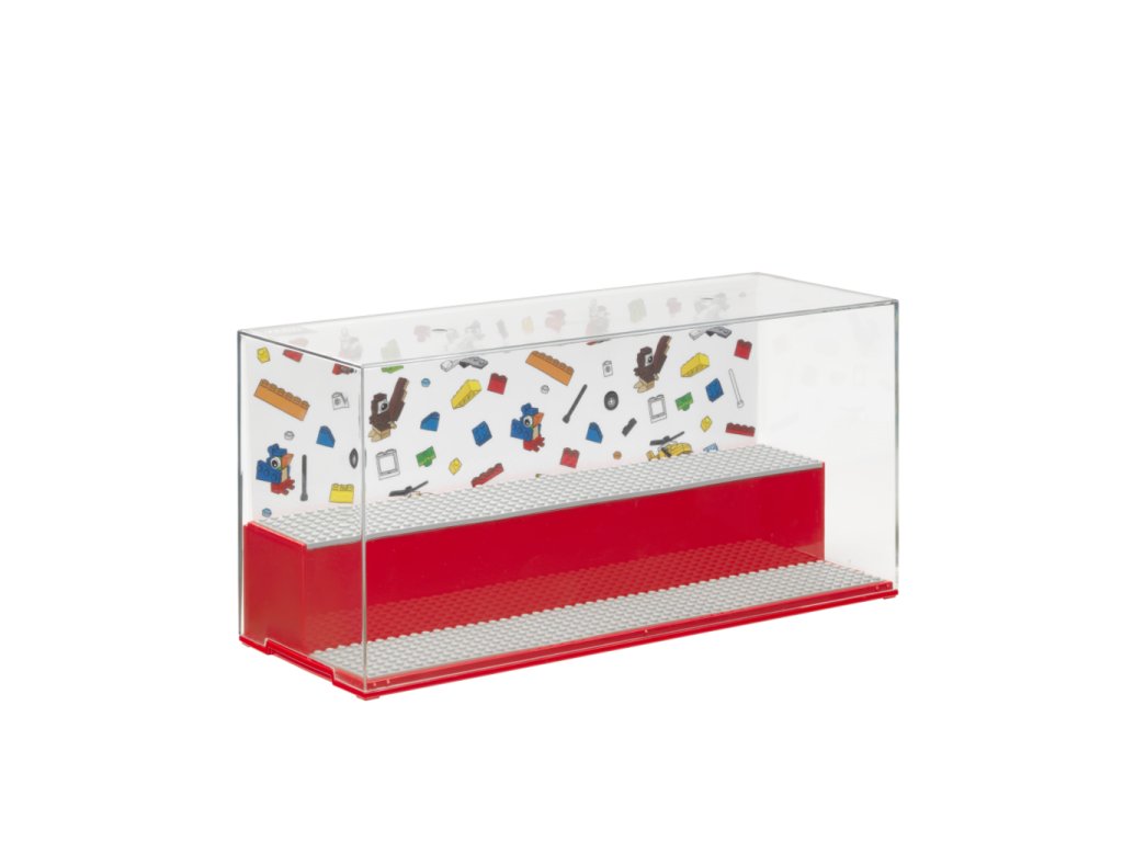 Štýlová, plne uzavretá vitrínka s dvoma schodmy a 6 podložkami pre vloženie LEGO minifigúrok. Bavte sa a uchovajte svoje LEGO stavby v tomto novom úložnom boxu. Súčasťou balenia je 6 originálnych šedých základových LEGO podložiek a dve kulisy s pozadím. Priehľadný kryt chráni LEGO výtvory pred prachom.