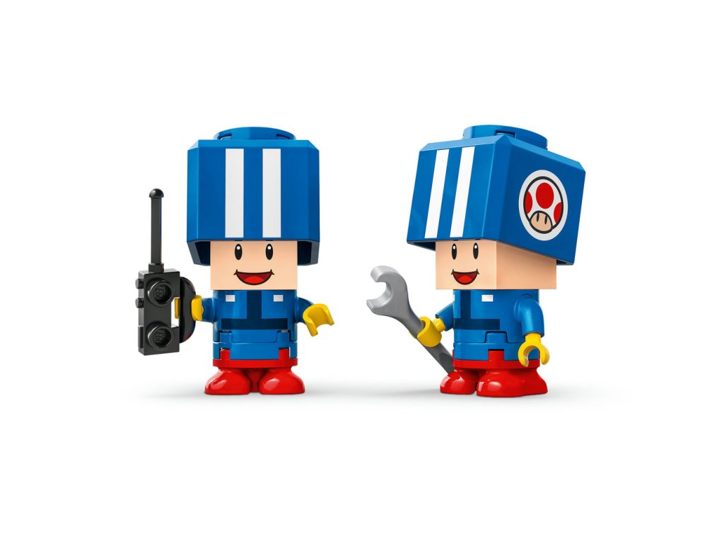 - 2 zberateľské hračkárskefigúrky Nintendo® Blue Toad (Pit Crew) – Táto stavebnica Mario Kart™ z kociek LEGO® obsahuje 2 figúrky Blue Toad (Pit Crew) v modrej uniforme posádky a rôzne doplnky