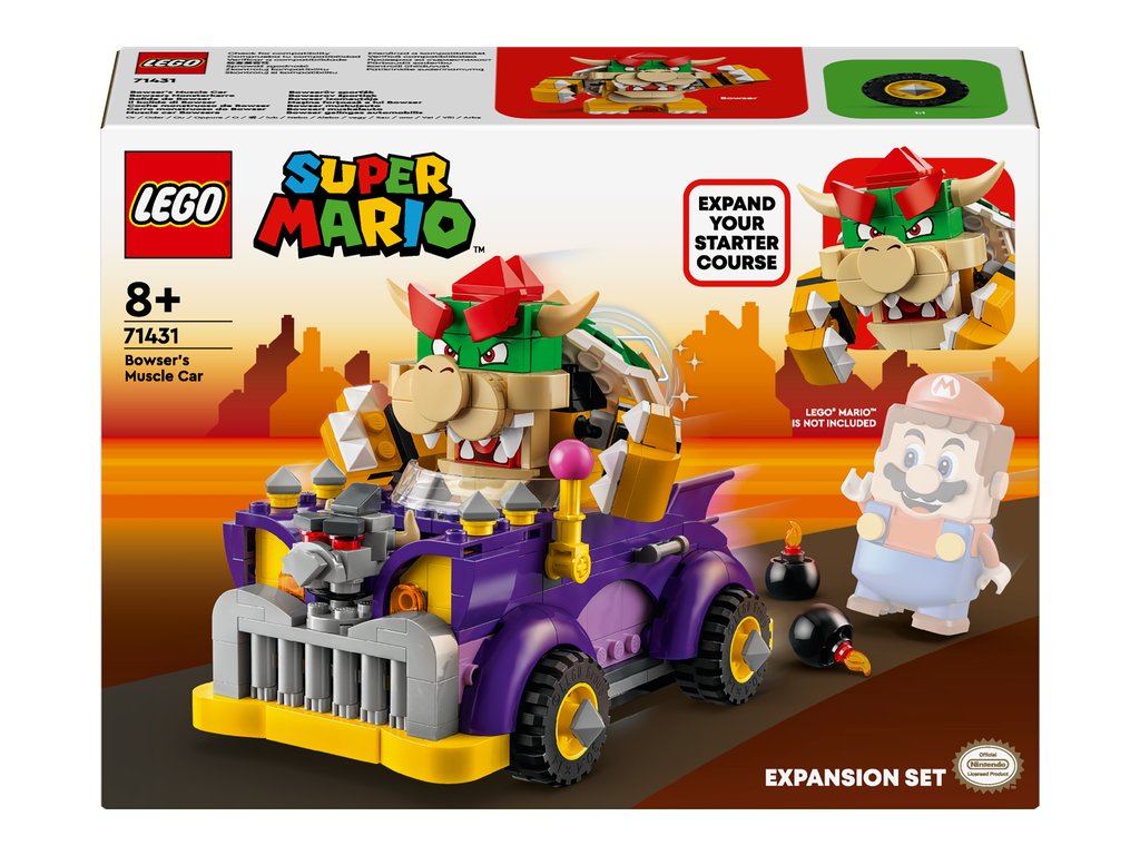 Jazdite a hrajte sa na postavy s rozširujúcim setom Bowserov športiak (71431). Toto zberateľské hračkárske auto LEGO® Super Mario™ pre deti od 8 rokov má veľa hravých funkcií vrátane páky, ktorá rozhýbe ozdobu kapoty alebo aktivuje iné triky. Stavebnica obsahuje aj Super Mario™ postavičku Bowsera z kociek s akčným prvkom.
