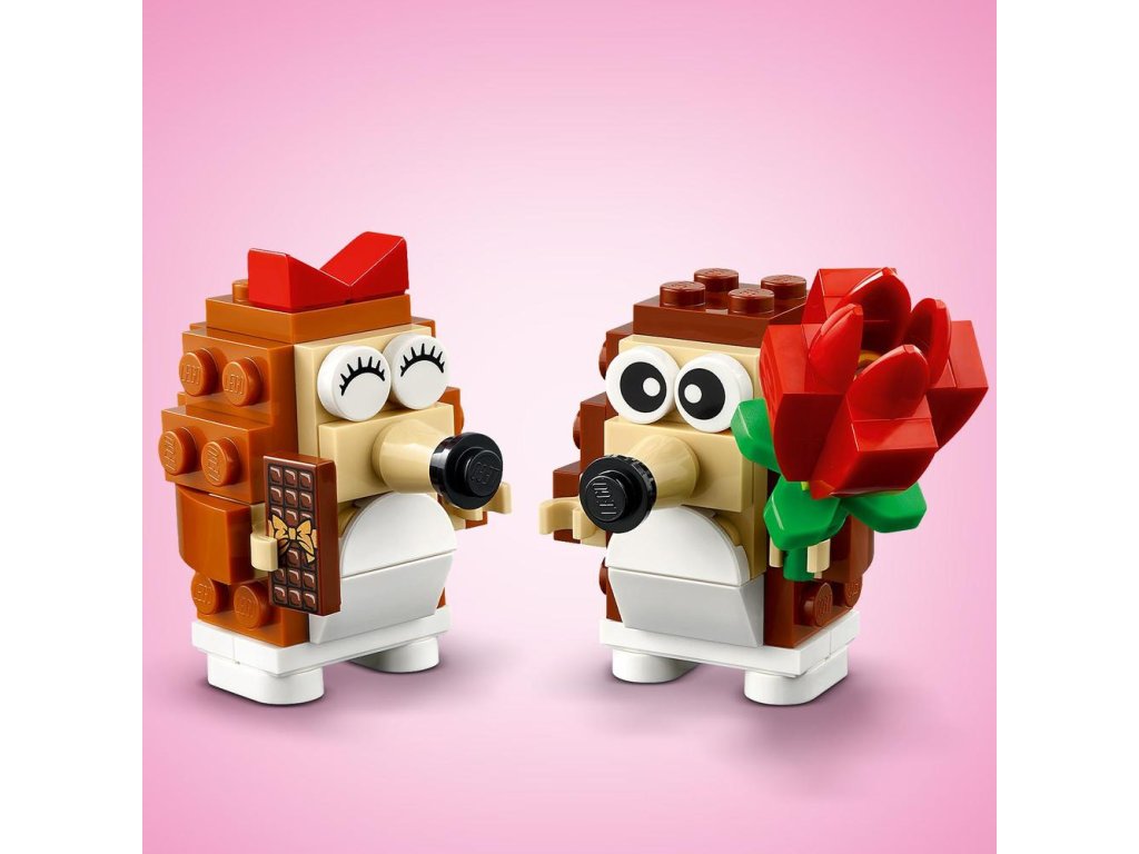 Táto stavebnica je skvelým darčekom LEGO na akúkoľvek špeciálnu príležitosť vrátane Valentína a možno ju skombinovať s ostatnými stavebnicami LEGO (predávané samostatne), a deti si tak užijú ešte viac príbehov so zvieratkami. Keď sa dohrajú, ježkovia budú krásnym výstavným kúskom na poličke či nočnom stolíku.