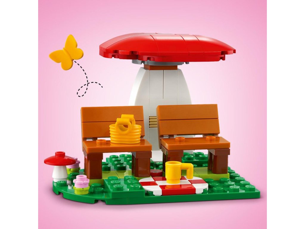Táto farebná stavebnica LEGO pre deti je plná herných možností a rôznych funkcií. Ježkov môžete odpojiť od lavičky, aby mohli voľne stáť, alebo ich môžete posadiť na deku a užiť si piknik s ružou, šálkami, koláčom a žltým motýľom. Labky ježkov takisto dokážu držať šálky.