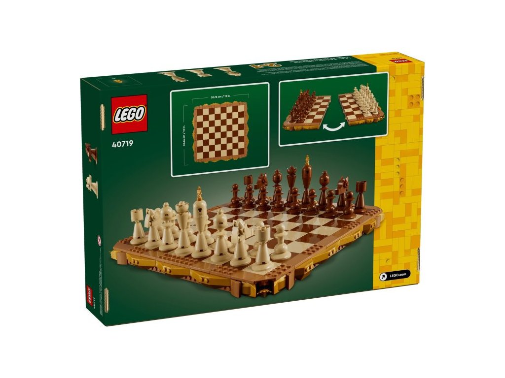 Užite si spoločnú hru s LEGO® Klasickou šachovou súpravou (40719) pre deti, zábavnou vzdelávacou hračkou pre chlapcov a dievčatá od 9 rokov. Táto zostaviteľná šachová súprava je zábavnou verziou obľúbenej hry pre celú rodinu. Model obsahuje figúrky na šach aj dámu, takže nádejní logickí stratégovia si môžu vychutnať dve hry v jednej. Medzi prepracované prvky stavebnice patria sochy minifigúrok na figúrkach kráľovnej a lesklé zlaté prvky. Po zostavení bude stavebnica jedinečným výstavným kúskom na stole, alebo ju môžete rozdeliť na dve časti a jednoducho uskladniť. Šach mat!