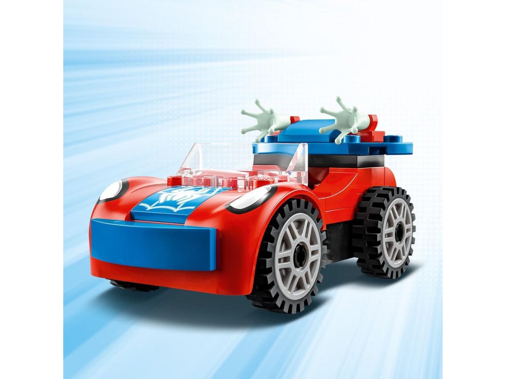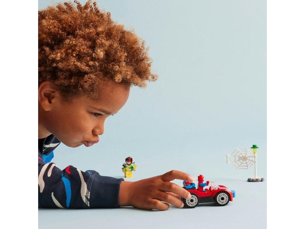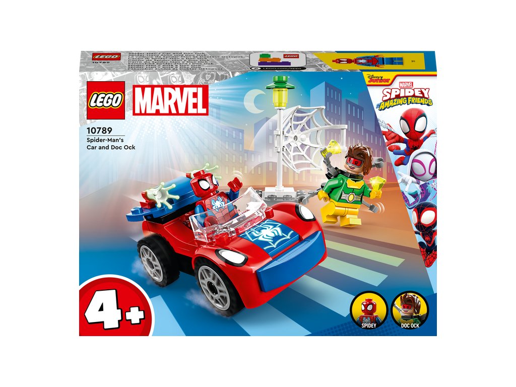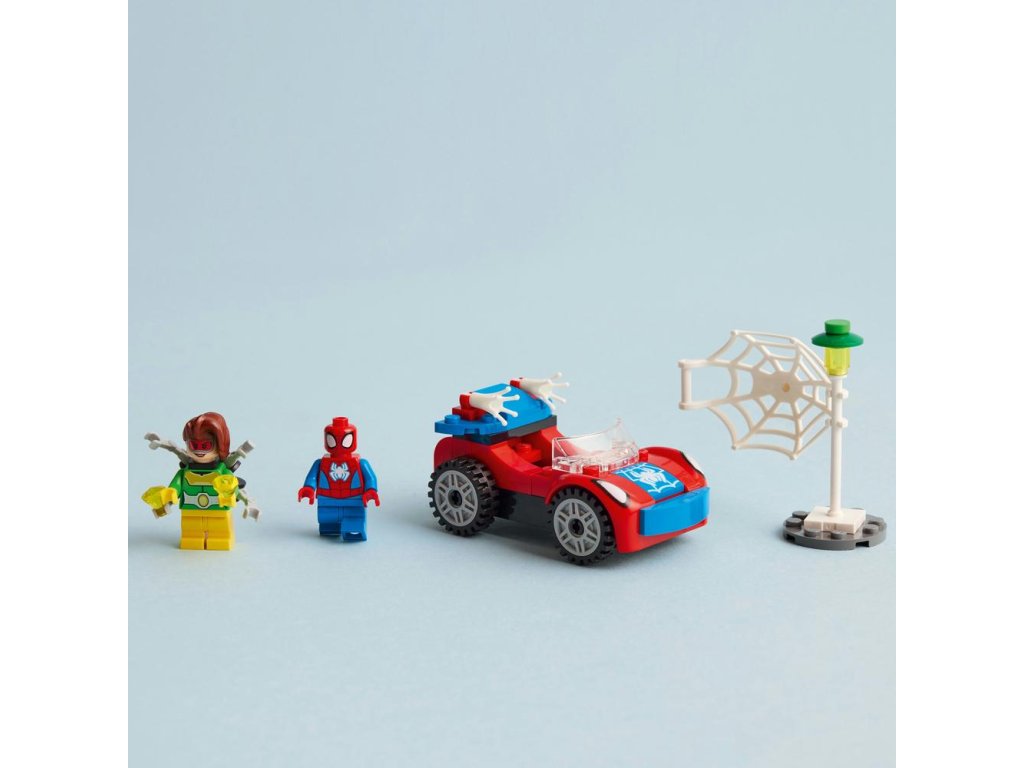 - Ikonické postavy – Stavebnica obsahuje minifigúrky Spideyho a Doc Ocka, Spideyho auto s dvomi prvkami pavučiny, ktoré svietia v tme, a štartovaciu kocku podvozku na podporu začínajúcich staviteľov.