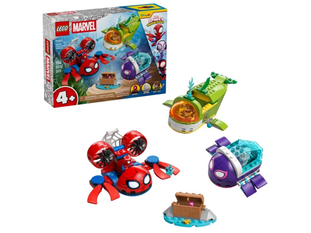 - VOZIDLÁ SUPERHRDINOV PROTI ZLODUCHOVI – Spideyho krabia ponorka sa pýši veľkou pavučinovou pascou, korytnačia ponorka Ghost-Spider zas otváracím priehľadným pancierom a veľrybia ponorka Doktorky Ock má na plutvách vystreľovače