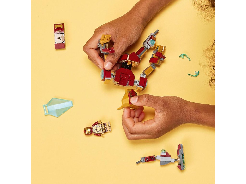 - Nápaditá hra a výstavný kúsok – Deti môžu vložiť minifigúrku Iron Mana do otvárajúceho kokpitu robotického brnenia a potom pomocou pohyblivého robota prežiť neobmedzené epické súboje a superhrdinské dobrodružstvá