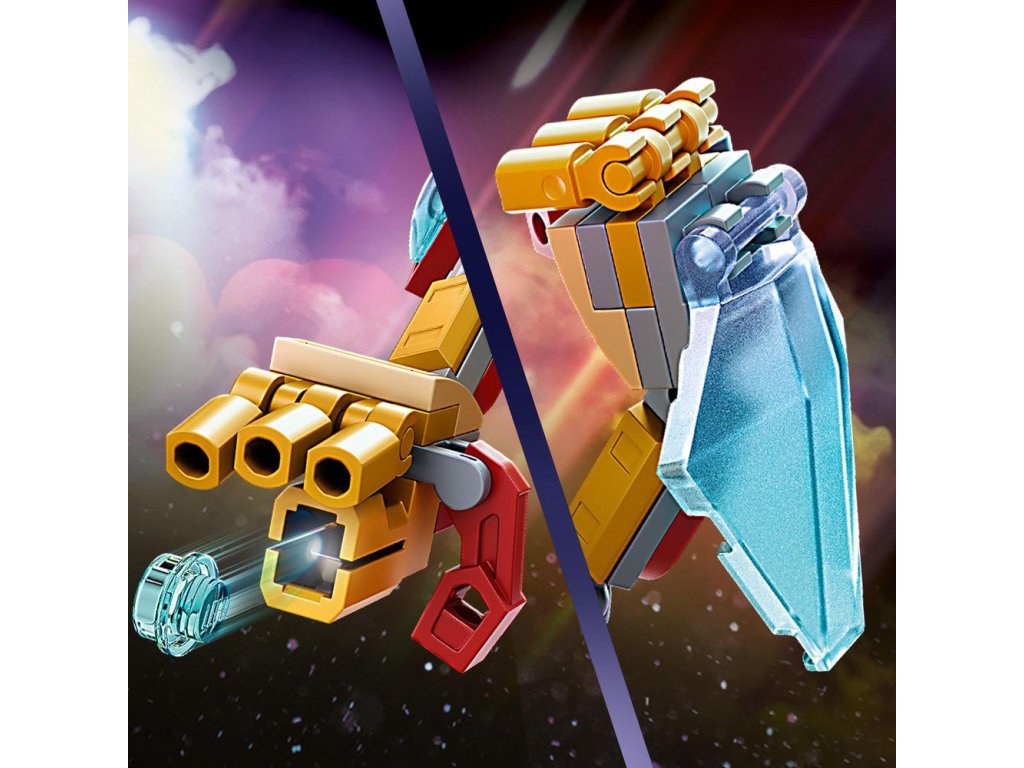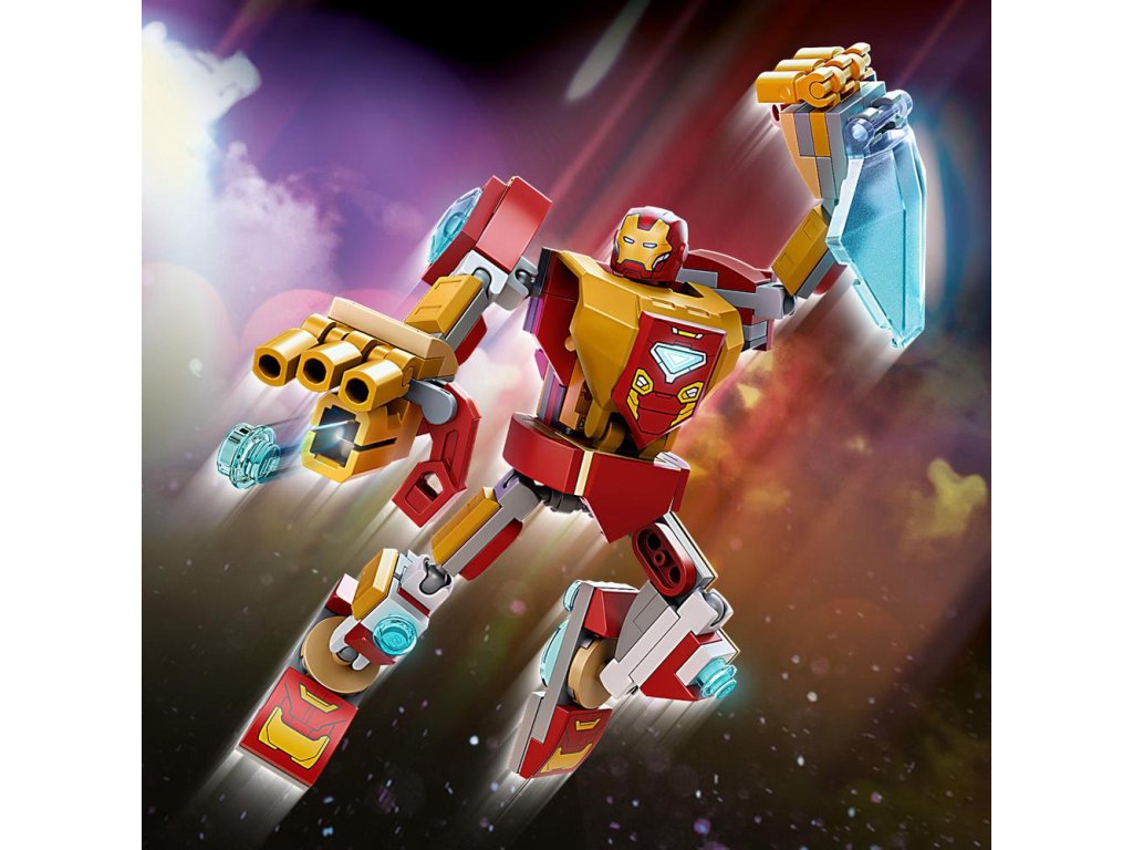 - Obľúbená postavička od Marvelu – Obsahuje minifigúrku Iron Mana a zostaviteľný Iron Manov robotický oblek so vstavaným vystreľovačom, veľkým energetickým štítom a kompletne kĺbovými rukami a nohami