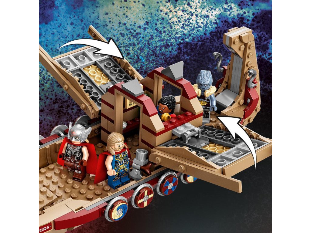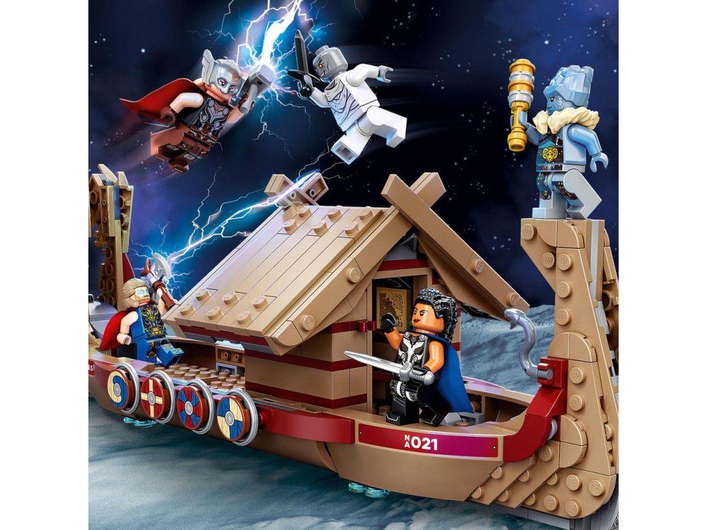 - Ikonickí superhrdinovia – Na palube Thorovej mocnej lode z filmu sa nachádza 5 minifigúrok: Thor, Mocný Thor, Valkýra, Korg a Gorr. Množstvo autentických doplnkov ďalej podnieti nápaditú hru
