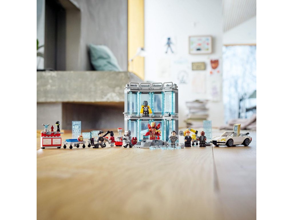 - Realistické detaily – Medzi známymi predmetmi z filmov nájdete športiak s modelovou mapou Stark Expo, pomocné robotické rameno, dielňu s nástrojmi a kopec autentických doplnkov