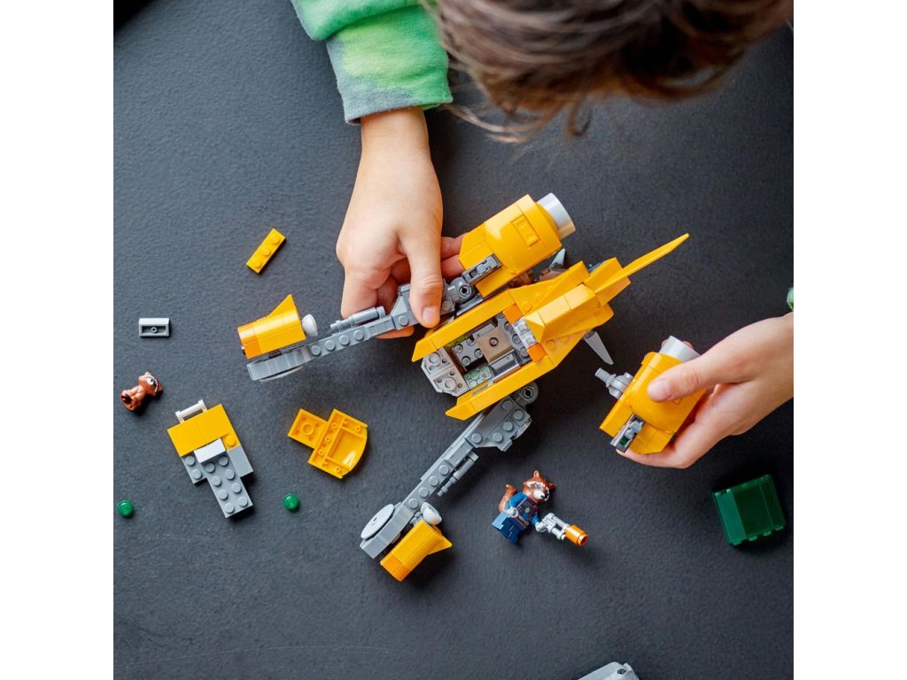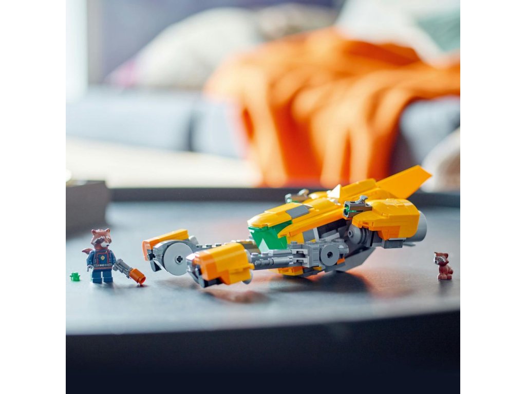 Vesmírna loď superhrdinov z tretieho dielu filmov Strážcovia Galaxie od štúdia Marvel. LEGO® Marvel 76254 Vesmírna loď malého Rocketa vezme deti od 8 rokov na nekonečné dobrodružstvá do sveta fantázie. Vydajte sa do vesmíru! Táto zostaviteľná hračka je replikou vesmírnej lode, ktorú používa malý Rocket vo filme na to, aby ušiel od svojich tvorcov. Loď má otvárací kokpit, nastaviteľný podvozok a dva vystreľovače projektilov. Okrem figúrky malého Rocketa v stavebnici nechýba ani minifigúrka dospelého Rocketa, ktorá podnieti ďalšiu akciu so Strážcami galaxie. Ak chcú deti zažiť ešte viac digitálnej zábavy, stačí si stiahnuť aplikáciu LEGO Builder a vstúpiť tak do kreatívneho sveta, kde si môžu modely približovať a otáčať v 3D prostredí, ukladať si stavebnice a sledovať postup stavania.