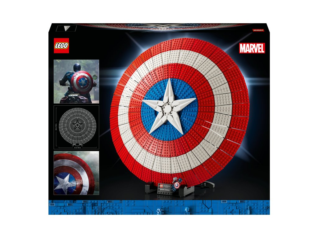 - Kultový štít – LEGO® Marvel Štít Kapitána Ameriky (76262) je autentickou replikou známeho symbolu dobrého proti zlu, ktorý si môžete postaviť a vystaviť