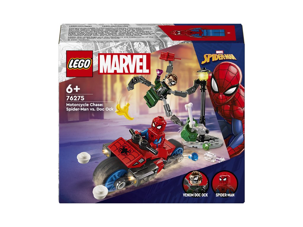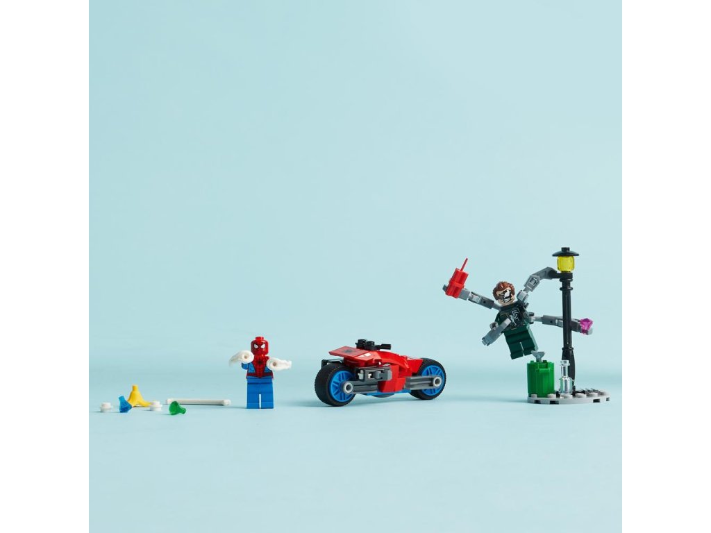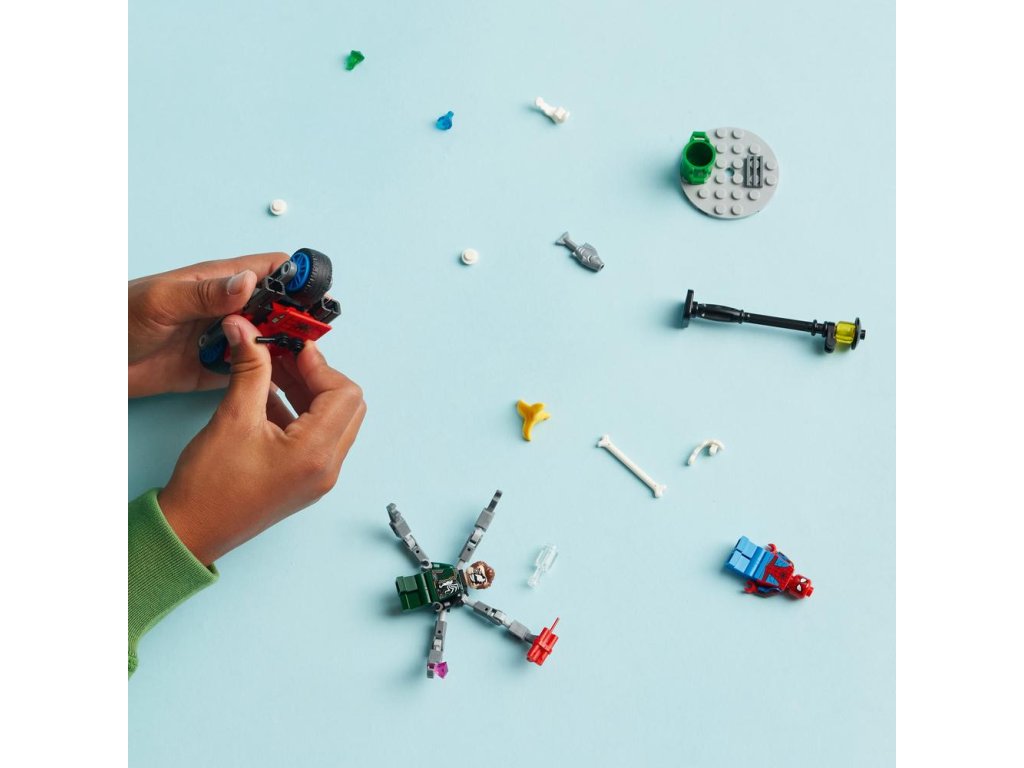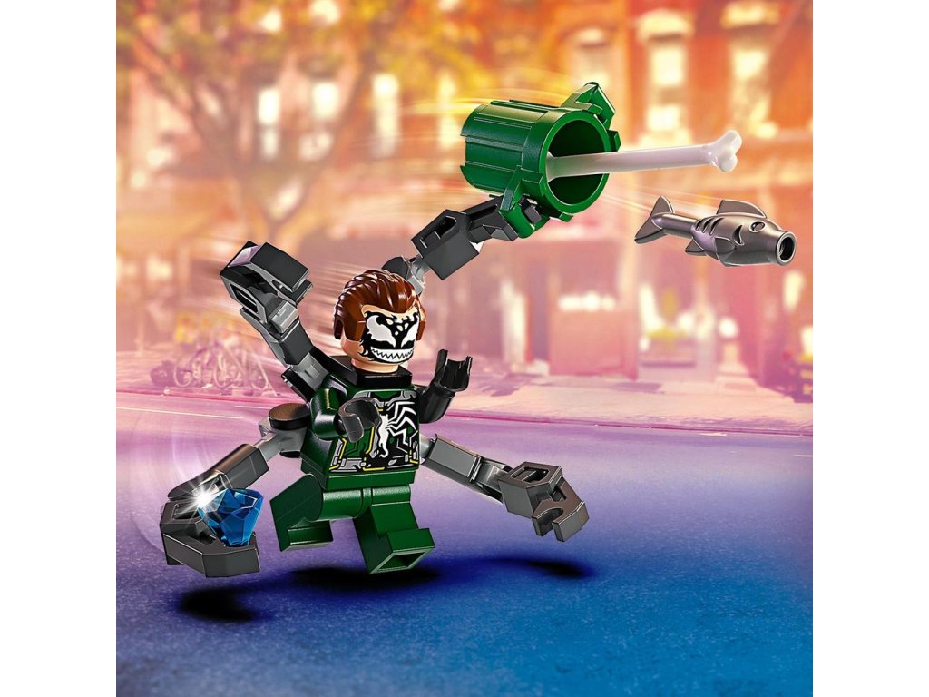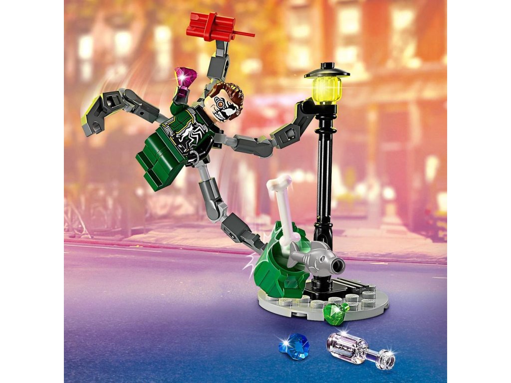 Obsahuje minifigúrky LEGO Doc Ocka a Spider-Mana. Doc Ock má 4 dlhé a ohybné chápadlá a zobrazuje charakteristické znaky Venoma, ktorý sa infiltroval do zloducha, aby bol ešte podľajší. Minifigúrky možno uchopiť za ďalšie prvky vrátane pouličnej lampy, dynamitu a odpadkového koša, ktorý obsahuje fľašu, rybu, kosti a banánovú šupku. Spider-Manova motorka a vystreľovače projektilov a pavučiny vezmú deti na poriadne rýchle dobrodružstvá. Pre väčšiu digitálnu zábavu si staviteľ môže približovať, otáčať modely v 3D zobrazeniach a sledovať svoj pokrok pomocou zábavnej, intuitívnej aplikácie LEGO Builder.