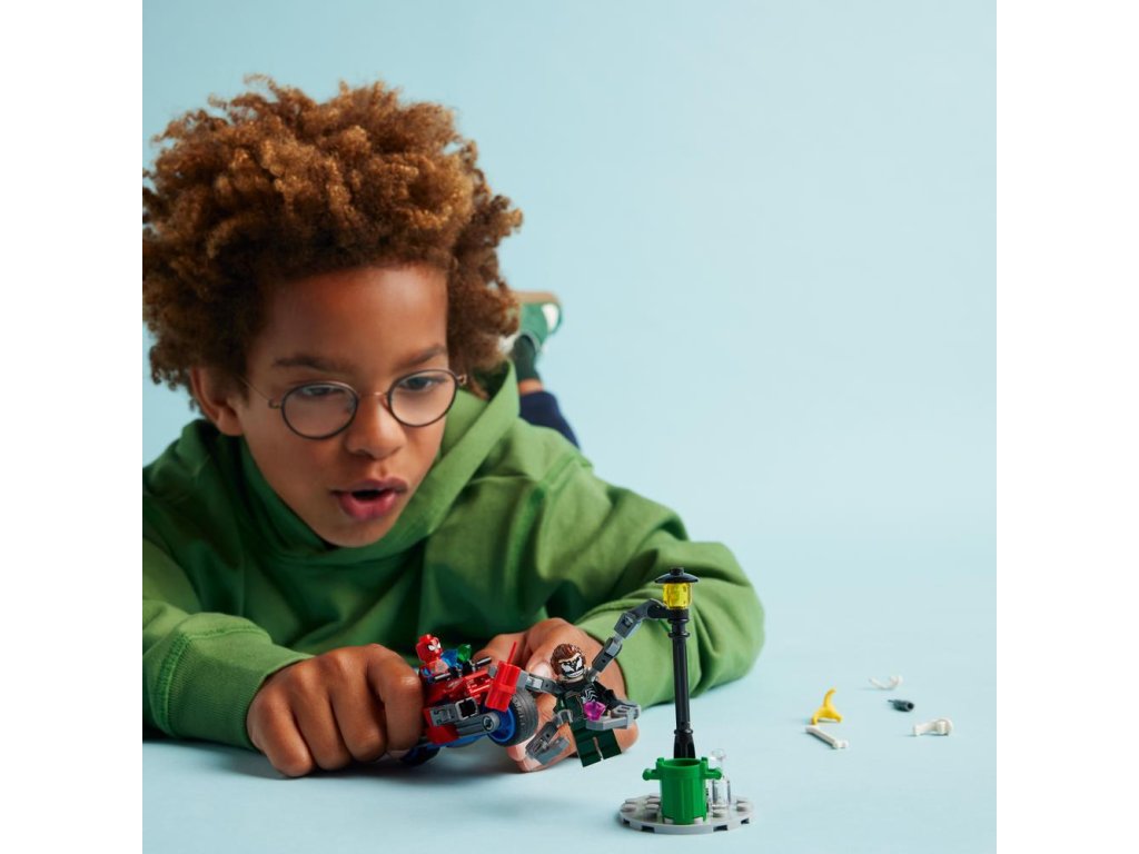 Zostaviteľný model LEGO® Marvel Naháňačka na motorke: Spider-Man vs. Doc Ock je plný skvelých doplnkov pre fanúšikov superhrdinov od 6 rokov.