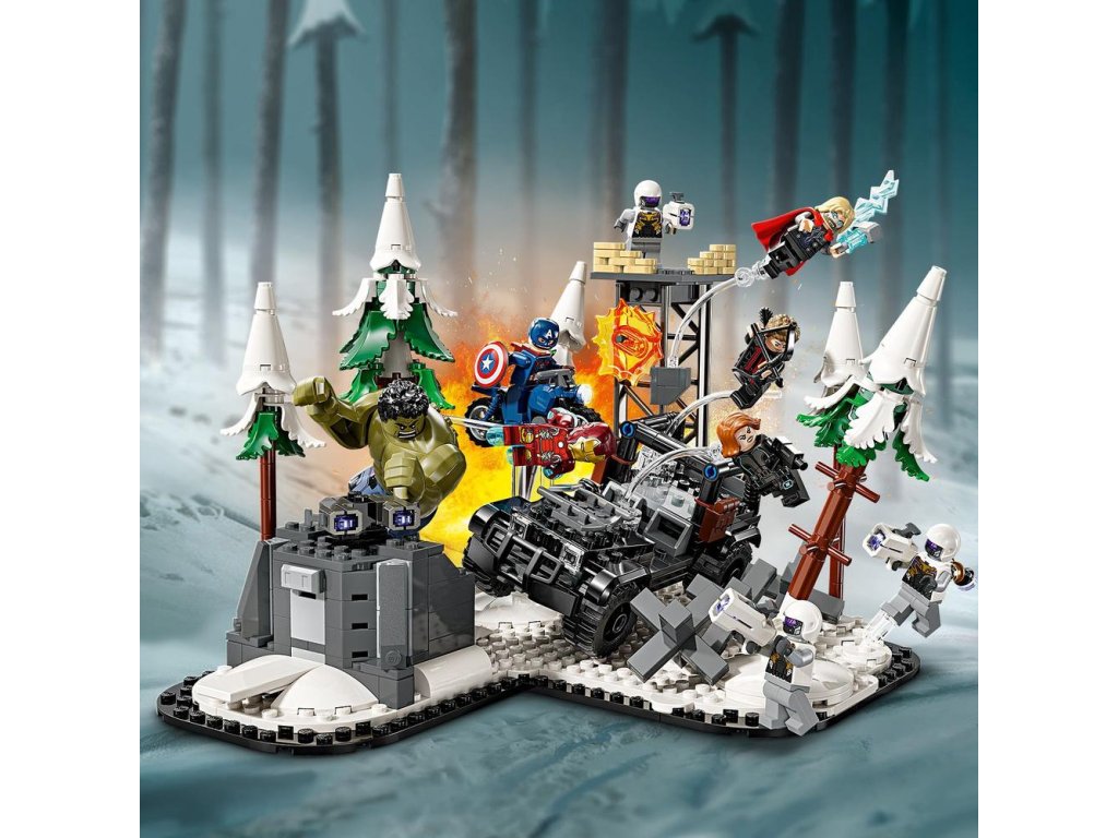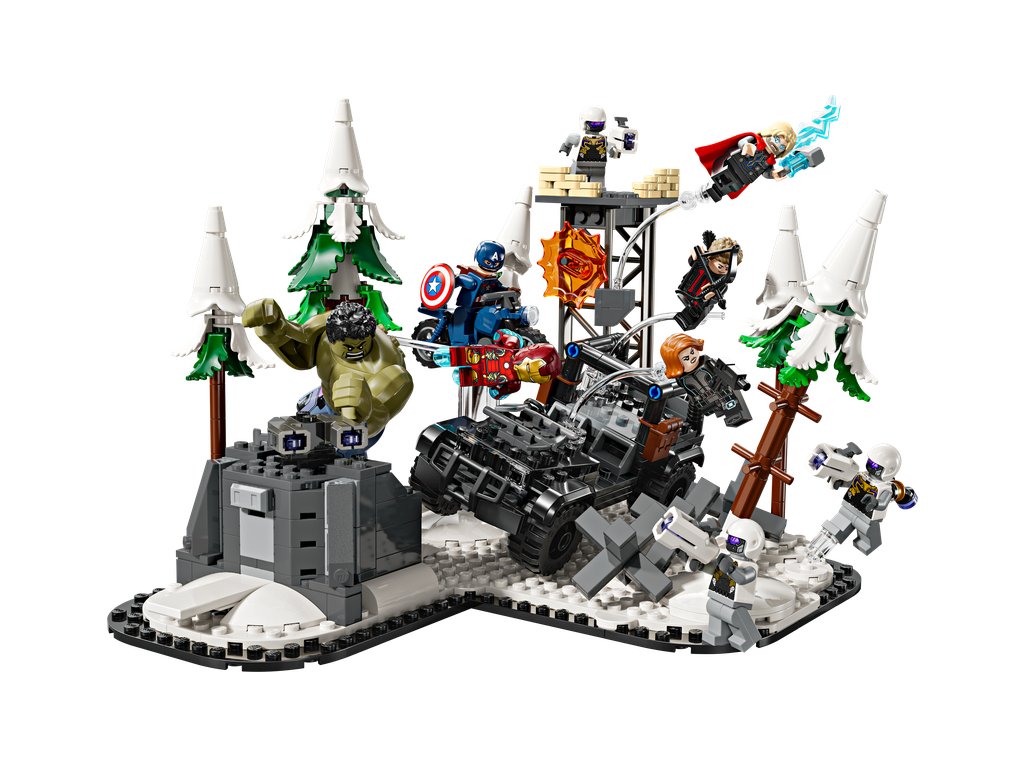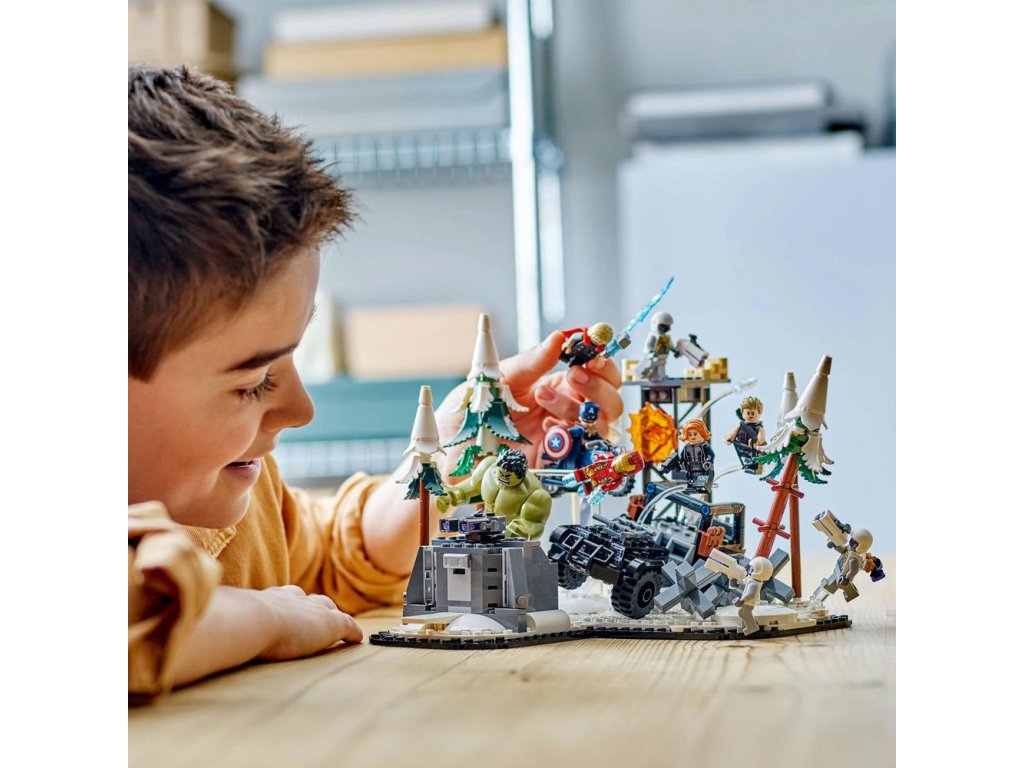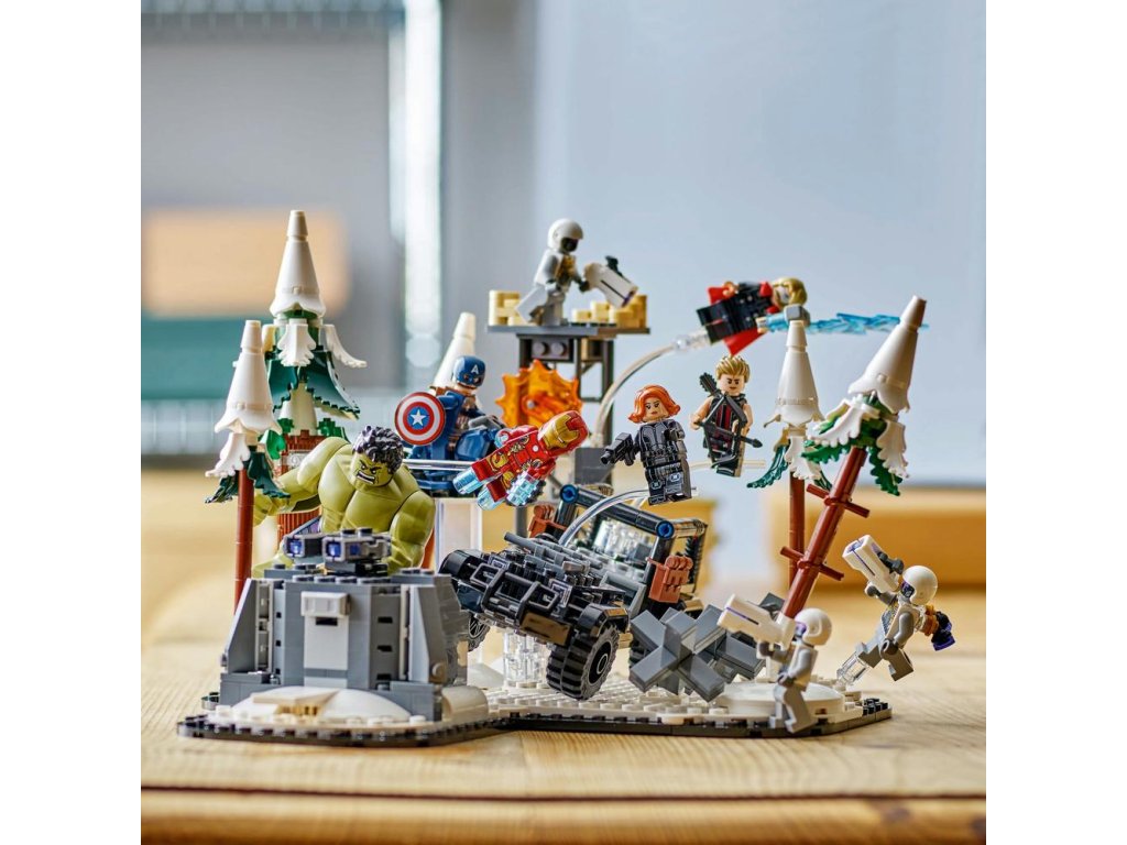 Stavebnica je založená na veľkej bojovej scéne z úspešného filmu Avengers: Age of Ultron od Marvel Studios. Súčasťou všestrannej stavebnice je 5 minifigúrok Avengerov – Hawkeye, Black Widow, Captain America, Iron Man a Thor – veľká figúrka Hulka a 3 minifigúrky vojakov Hydry. 5 modulov, ktoré tvoria stavebnicu, možno prekonfigurovať na nekonečné herné možnosti alebo ich skombinovať a vytvoriť tak pôsobivý výstavný kúsok. Stavebnica obsahuje rôzne zbrane a doplnky, ktoré inšpirujú k nápaditým hrám na postavy, ako aj terénne vozidlo. Intuitívna aplikácia LEGO Builder umožňuje deťom približovať, otáčať modely v 3D, ukladať stavebnice a sledovať postup pri stavaní.