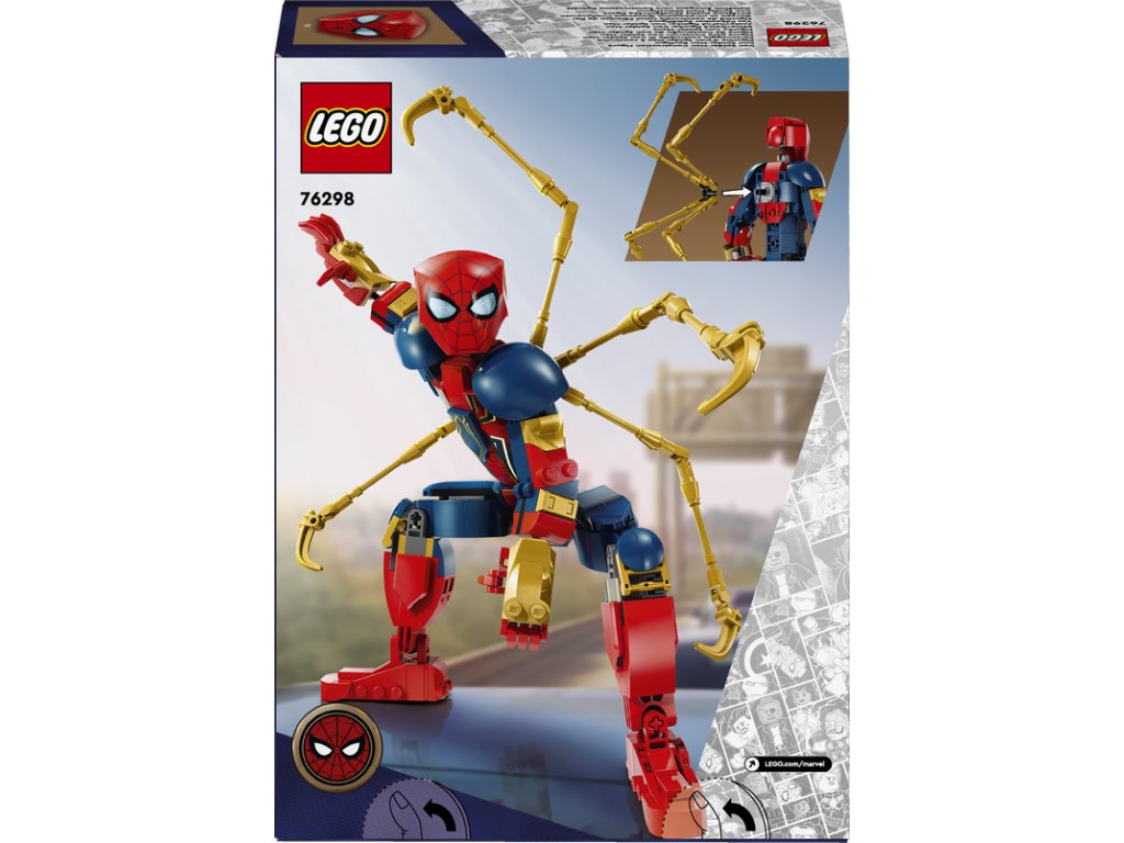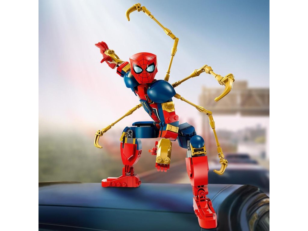 Polohovateľná figúrka superhrdinu meria vyše 27 cm na výšku a má pohyblivé kĺby v ramenách, rukách, bedrách a nohách, takže si s ním deti môžu zinscenovať dynamické dobrodružstvá. Figúrka má na sebe špičkové brnenie Iron Spider-Mana, ktoré vytvoril Tony Stark, a obsahuje 4 ďalšie pohyblivé ruky. Pre väčšiu digitálnu zábavu si stavitelia môžu približovať a otáčať súpravy v 3D rozhraní a sledovať svoj pokrok pomocou zábavnej a intuitívnej aplikácie LEGO Builder.