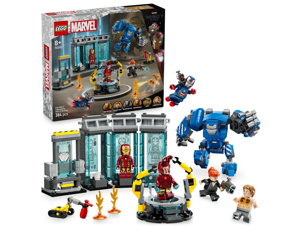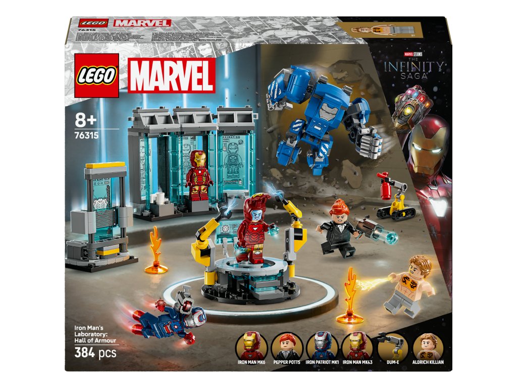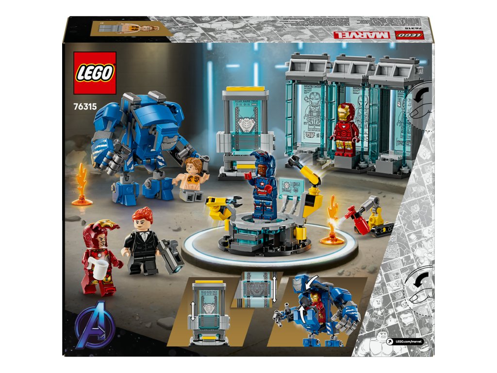 Iron Man a jeho laboratórium: Sieň brnenia (76315) zavedie malých superhrdinov a fanúšikov filmov Marvel Avengers do kultového laboratória Iron Mana. Táto hravá stavebnica pre deti je plná figúrok LEGO® ǀ Marvel a parádnych prvkov, ktoré inšpirujúdeti ku tvorivým dobrodružstvám. Skvelý darček pre chlapcov a dievčatá od 8 rokov! Táto hračka LEGO ǀ Marvel obsahuje 3 sady s brnením a 3 minifigúrky Iron Mana: MK1, MK43 a MK6. Zostavu dopĺňajú minifigúrky Pepper Pottsovej a zloducha Aldricha Killian a, ako aj zostaviteľný robot Dum-E a veľký robot Igor Iron Man MK3 s pohyblivými rukami, nohami a kokpitom s miestom pre minifigúrku.