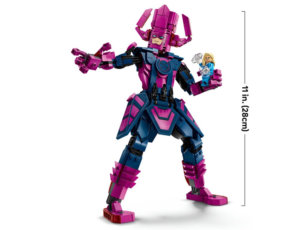 Táto zostaviteľná hračka LEGO ǀ Marvel Fantastická štvorka obsahuje 4 minifigúrky: Pána Fantastického s nohami, ktoré možno predĺžiť; Ľudskú pochodeň s 2 ručnými blastermi a ohnivými prvkami pripevnenými k nohám a priehľadnou podperou, ktorá mu umožňuje „lietať“; Neviditeľnú ženu s dvomi silovými štítmi v rukách; a Vec so svojimi veľkými, mocnými rukami. Plne pohyblivá konštrukčná figúrka kultového zloducha z filmu, Galactusa, meria vyše 28 cm na výšku. Táto pohyblivá stavebná figúrka naštartuje nekončiace akčné súboje proti superhrdinami. Viac digitálej zábavy čaká staviteľov v zábavnej a intuitívnej aplikácii LEGO Builder, v ktorej si môžu približovať a otáčať modely v 3D a sledovať svoj pokrok. Model sa skladá z 427 dielikov.