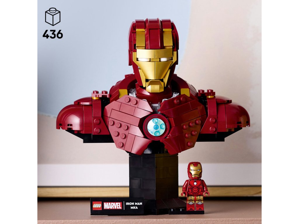 - Figúrka Iron Mana LEGO® ǀ Marvel pre dospelých – Busta Iron Man MK4 je zberateľská stavebnica pre skúsených staviteľov a dospelých fanúšikov superhrdinov
