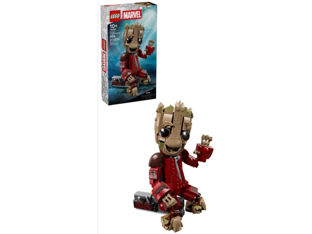 Zberateľský model LEGO ǀ Marvel prináša Groota v kombinéze Ničiteľov, ktorú má na sebe vo filme Strážcovia Galaxie 2 od štúdia Marvel. Zostaviteľnej figúrke nechýba ani rozbuška s 2 tlačidlami a 2 pohyblivými pákami, ktorá odkazuje na ikonickú scénu z filmu. Postavičku si môžete nastaviť podľa vlastných predstáv vďaka plne kĺbovým ramenám, rukám, prstom, bokom, nohám a krku. Deti môžu upraviť aj obočie a zmeniť tak Grootov výraz tváre. Stavebnica LEGO ǀ Marvel predstavuje skvelý nápad na narodeninový darček. Vďaka aplikácii LEGO Builder môžu deti stavať s istotou – priblížiť, otáčať v 3D a sledovať postup pomocou ľahko zrozumiteľných digitálnych inštrukcií. Stavebnica obsahuje 604 dielikov.