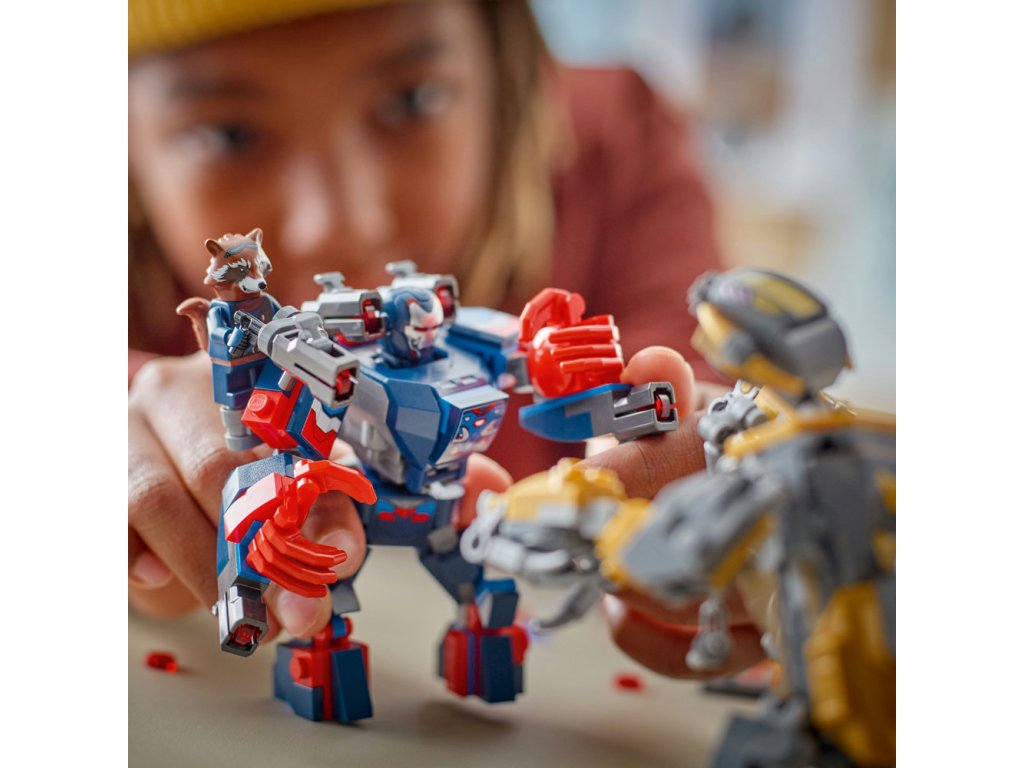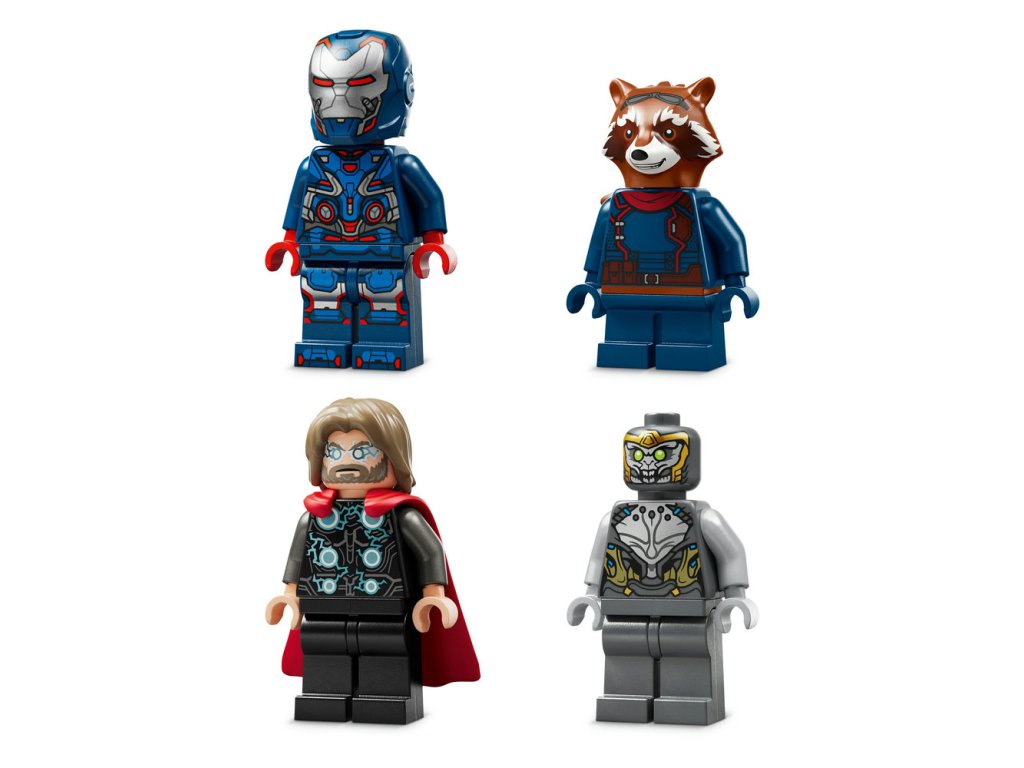- Minifigúrky LEGO® ǀ Marvel – Súčasťou modelu je 7 minifigúrok: Iron Patriot MK2; Rocket s veľkým vystreľovačom projektilov; Thor so Stormbreakerom a štyria Chitauri, z ktorých dvaja majú zlaté vystreľovače projektilov