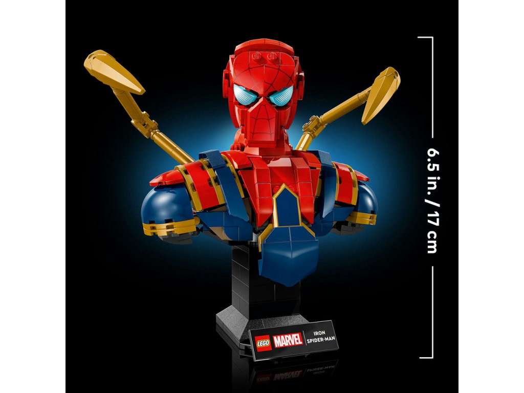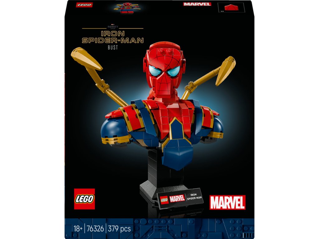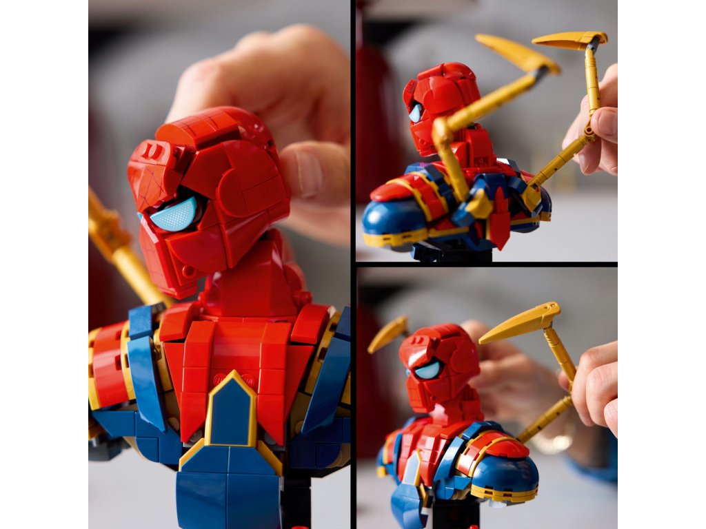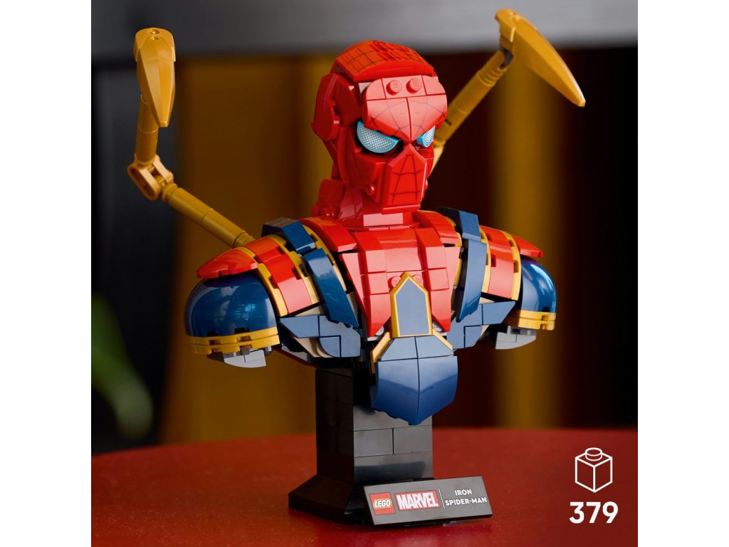 - Stavebnica pre dospelých fanúšikov Marvelu – Busta Iron Spider-Mana je zberateľský výstavný model pre skúsených staviteľov a dospelých fanúšikov superhrdinov