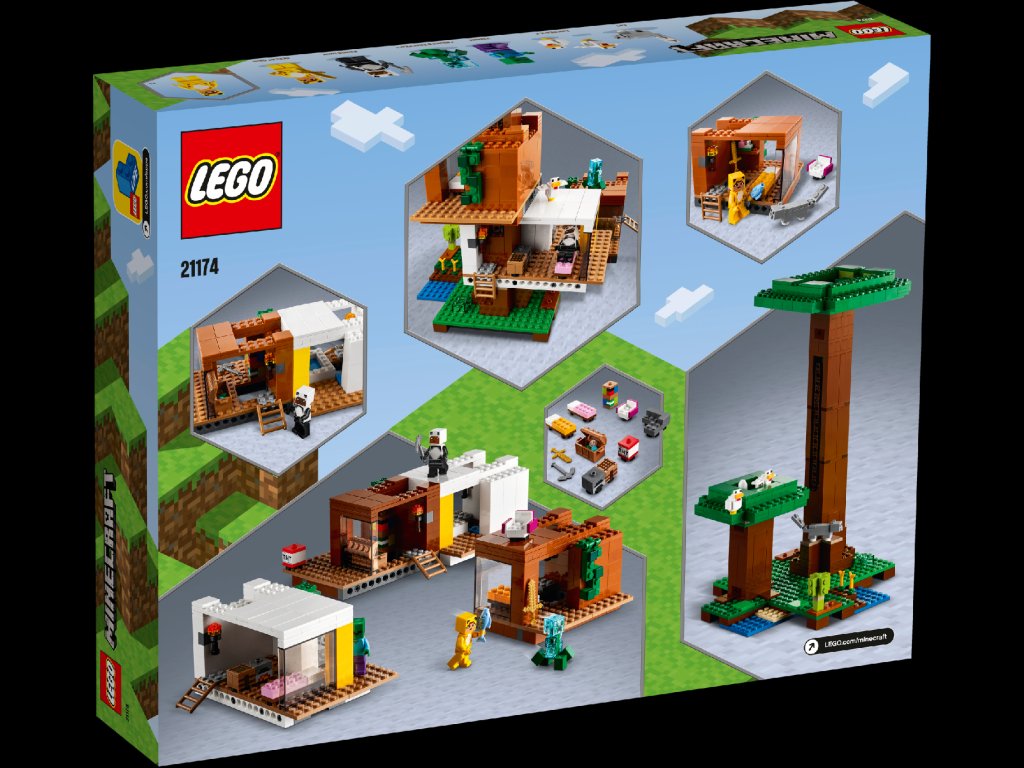 - LEGO® Minecraft ™ Moderný domček na strome (21174) je veľká, detailná a mimoriadne univerzálna stavebnica so 4 miestnosťami plnými autentickými doplnkami z Minecraftu, ktoré dajú donekonečna prestavovať.