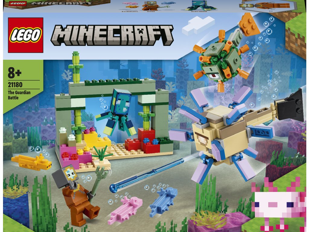 - Podmorské dobrodružstvo – Tento set LEGO® Minecraft® (21180) Súboj so strážcami plných postavičiek a funkcií od tej najpredávanejšej hry vezme hráčov na misiu až na samé dno oceánu