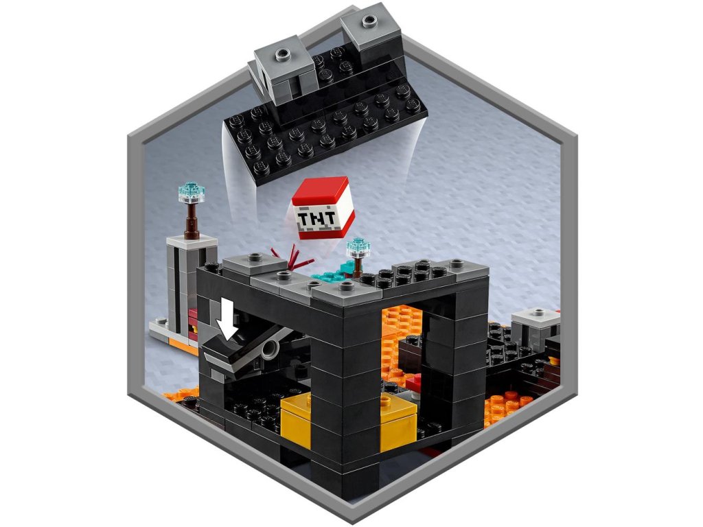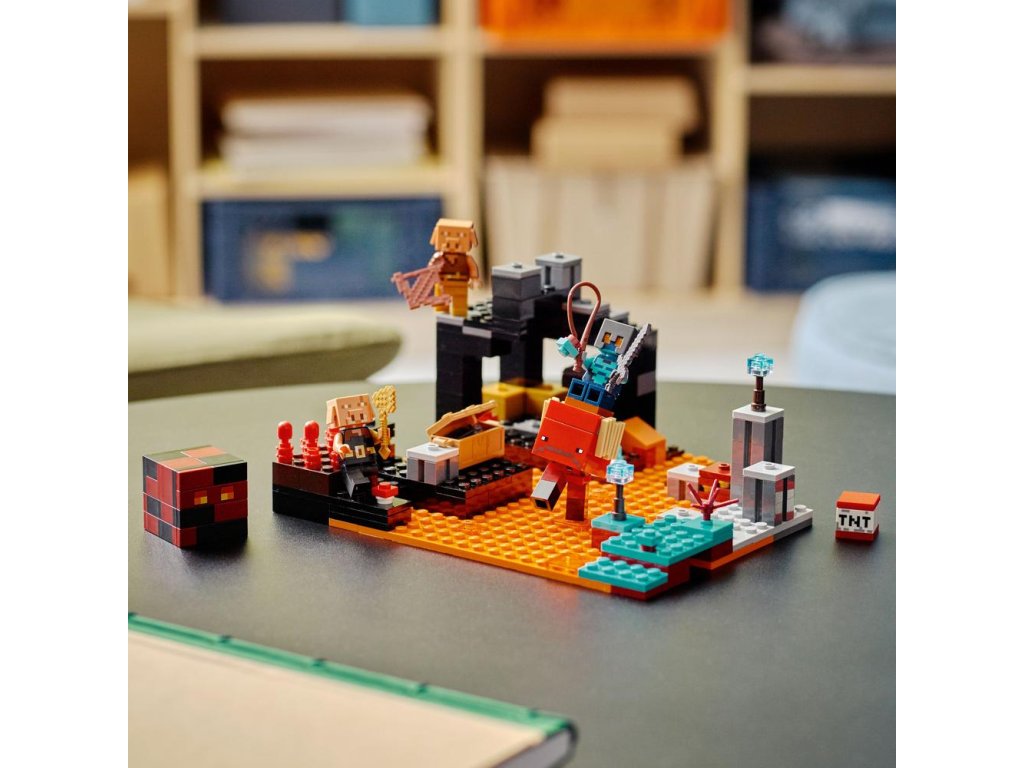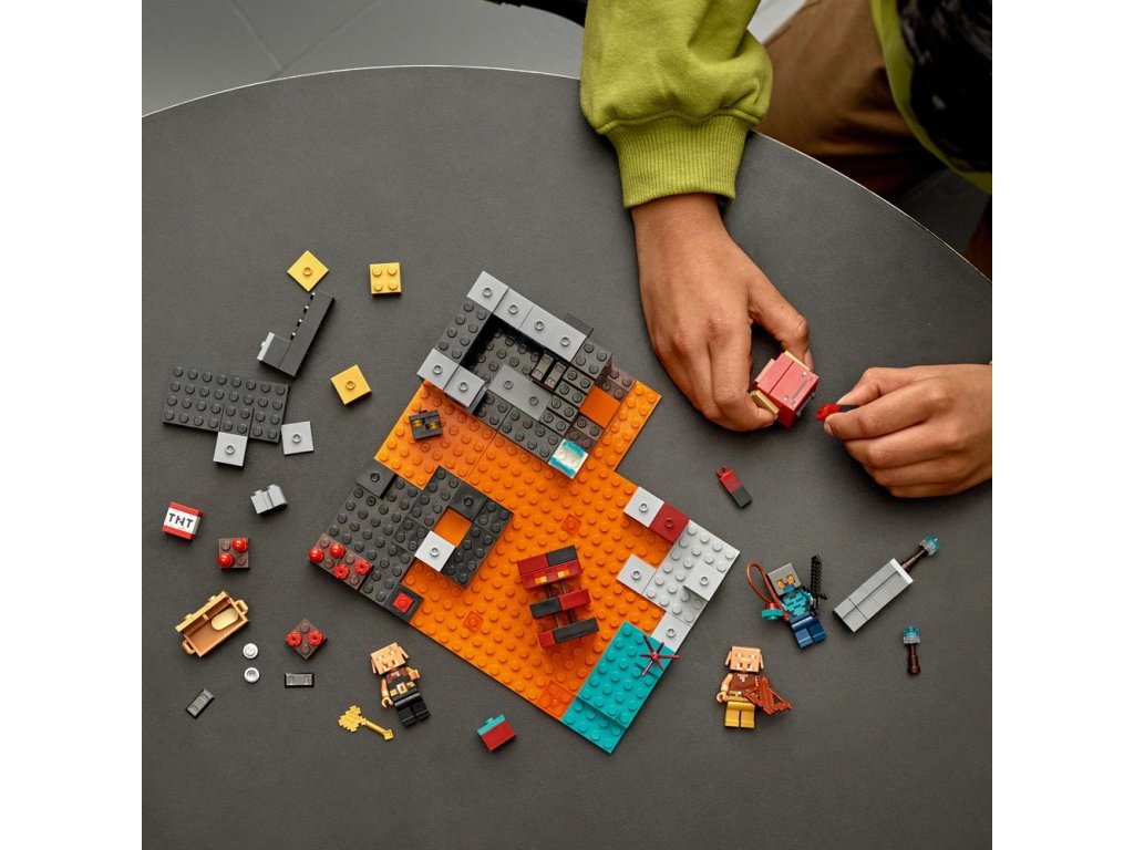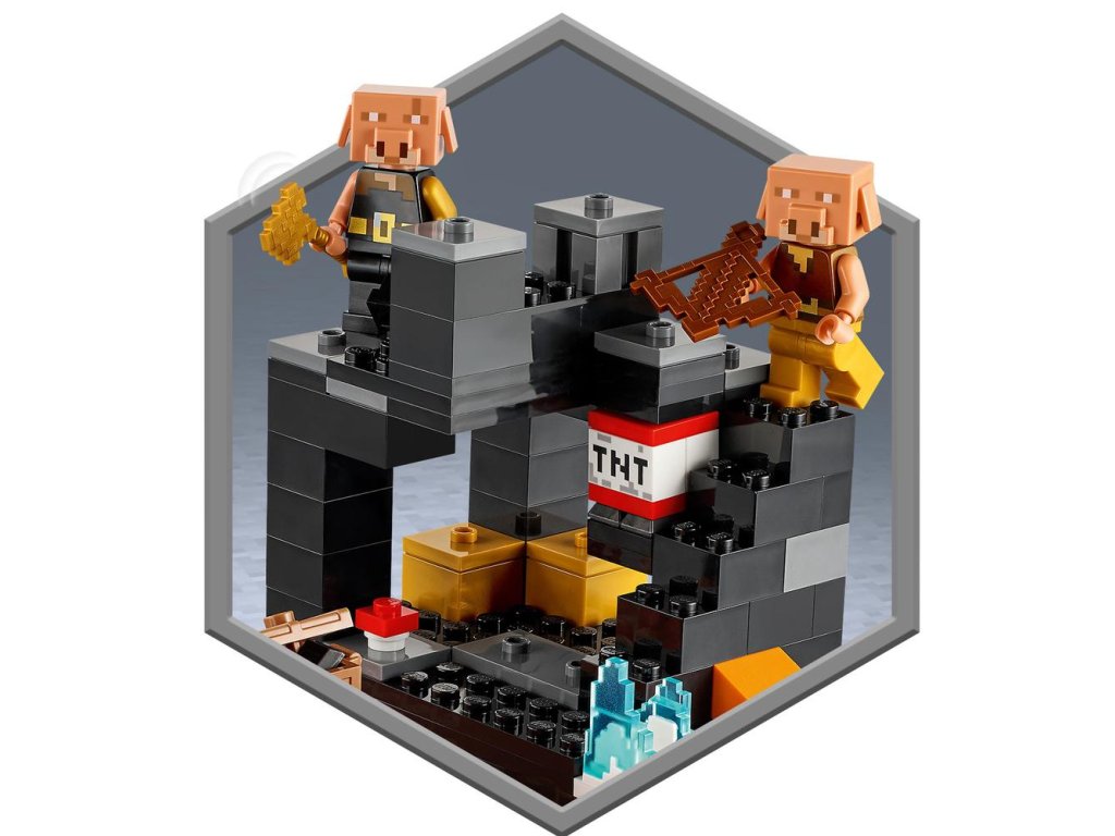 - Postavy z hry – Stavebnica obsahuje početnú zostavu postáv Minecraft®: podzemného dobrodruha, pekelný sliz, bojového Piglina, Piglina a chodca, ako aj kopu prvkov a doplnkov