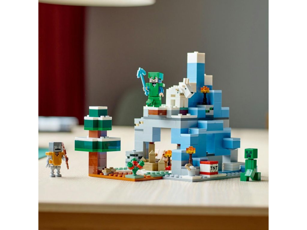 - Univerzálna stavebnica Minecraft® – Stavebnica LEGO® Minecraft Ľadové hory (21243) je plná klasických prvkov a funkcií, ktoré hráčom umožňujú stavať, objavovať a odpaľovať výbušniny