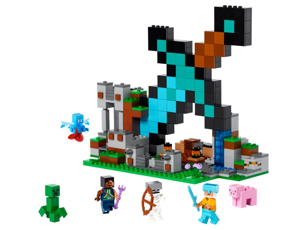 - Stavebnica s diamantovým mečom – Rytierska základňa LEGO® Minecraft® (21244) je inšpiráciou pre dobrodružstvá a predstavuje zväčšenú verziu jednej z najvzácnejších zbraní z hier