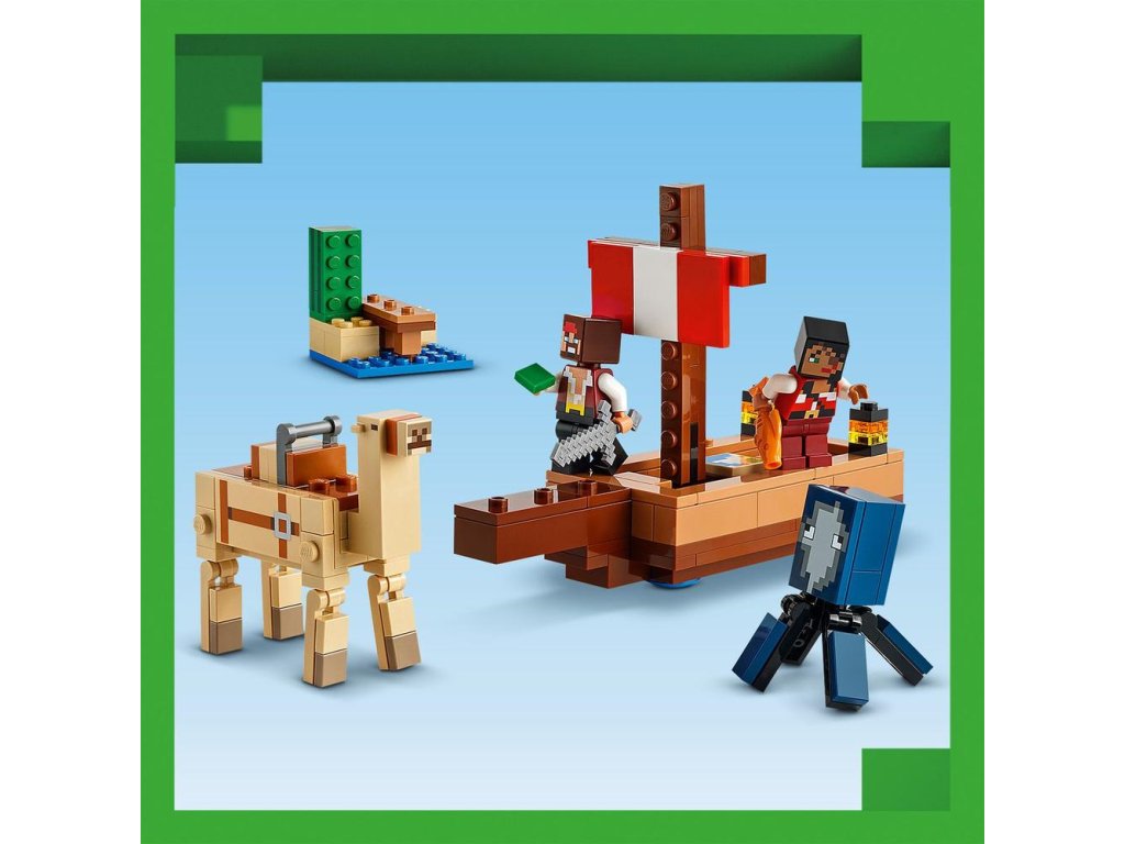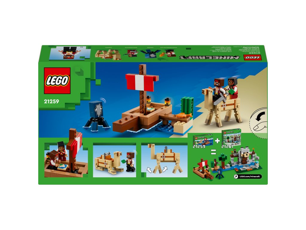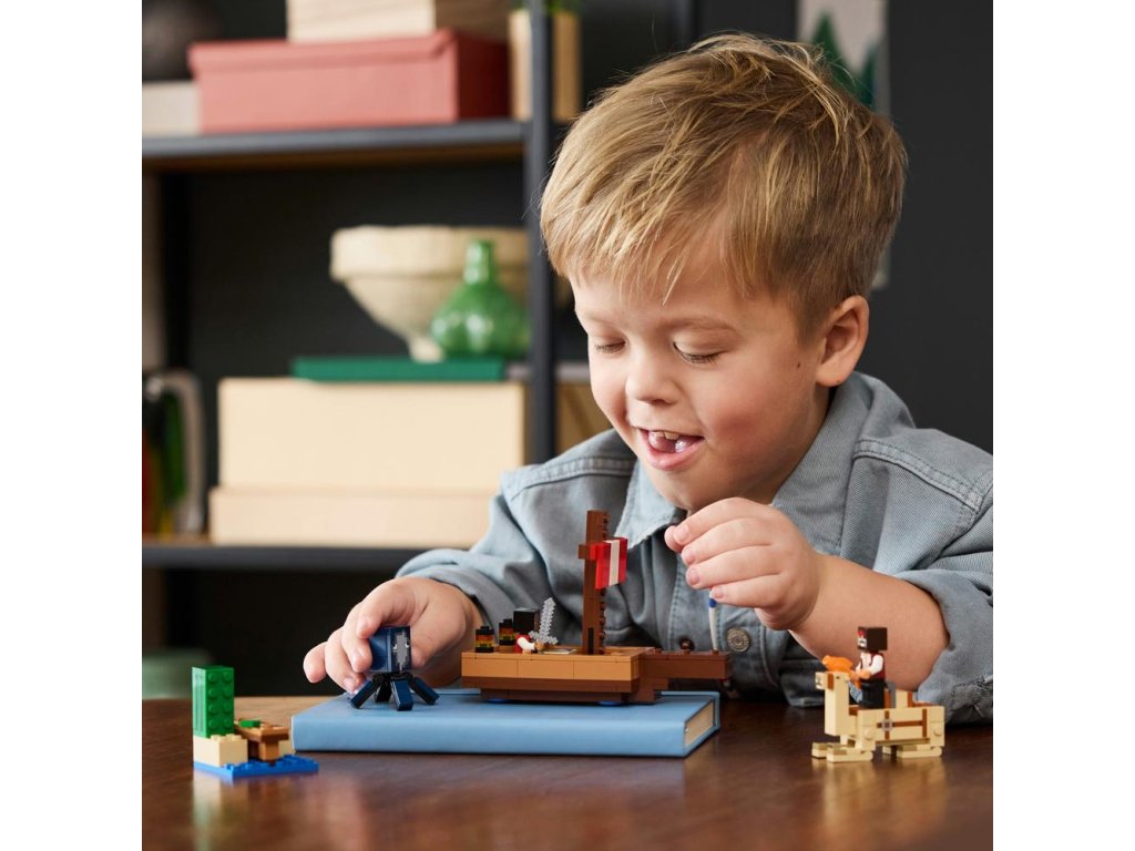 Táto dobrodružná pirátska stavebnica LEGO Minecraft obsahuje zostaviteľné hračkárske vozidlo, chobotnicu, ťavu, 2 figúrky pirátov a doplnky. Táto špeciálna stavebnica LEGO s pirátmi, loďou a vôbec prvou dospelou ťavou vo svete LEGO Minecraft poteší všetkých fanúšikov Minecraftu. V sedle ťavy s 2 sedadlami je miesto pre oboch pirátov, ktorí môžu vyraziť za ďalším dobrodružstvom. Doplnky vrátane ryby, mapy, železného meča a kaktusu podnietia tvorivú hru. Stavebnicu možno skombinovať s ďalšími modelmi zo série LEGO Minecraft (predávané samostatne) pre ešteviac herných možností.