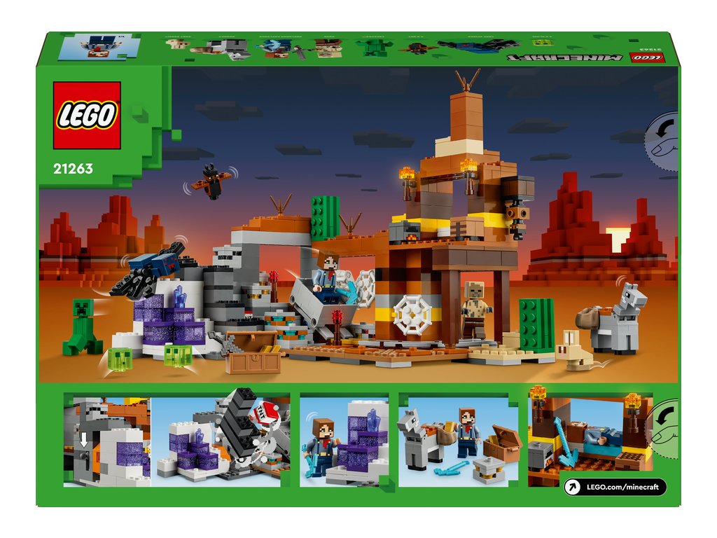 Hračkárska Banská šachta v pustatine (21263) je praktická stavebnica pre hráčov videohry Minecraft®. Táto všestranná stavebnica obsahuje obľúbené postavičky mafiánov z Minecraftu a bude skvelým darčekom pre chlapcov a dievčatá od 8 rokov, ktorí majú radi prieskumnícke hračky z Minecraftu, detské dobrodružné hračky a stavebnice.
