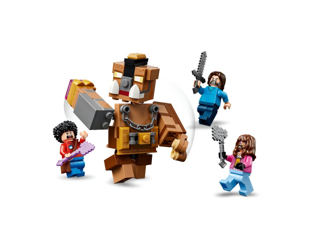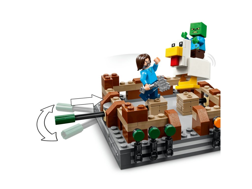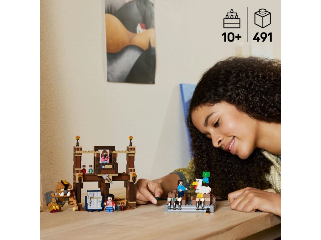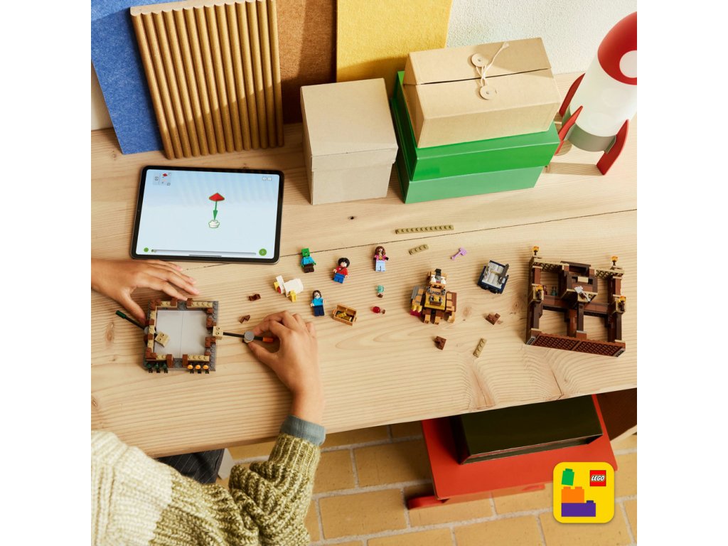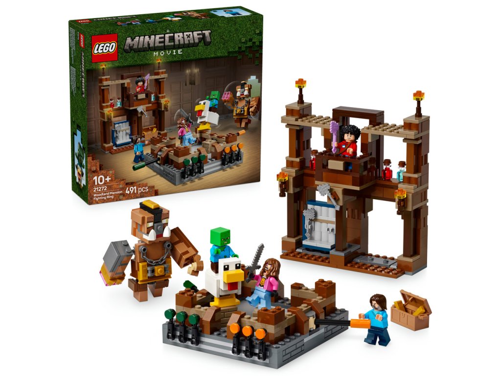 Stavebnica LEGO® Minecraft obsahuje figúrky z filmu – Stevea, Garretta, Henryho, malé zombie, kuracieho džokeja a polohovateľná veľká sviňa – ako aj zbrane a elixíry, s ktorými sa deti môžu zahrať na bojové scény a vymýšľať si vlastné dobrodružstvá. Model obsahuje funkčný boxerský ring so zapisovateľmi skóre a rukoväťami, ktoré môžu deti pripevniť k bojovníkom. Nájdete tu aj fasádu kaštieľa s odnímateľnou truhlou a stojanom na zbrane. Digitálnu zábavu si deti užijú s aplikáciou LEGO Builder, v ktorej si môžu približovať a otáčať modely v 3D a sledovať svoj pokrok.