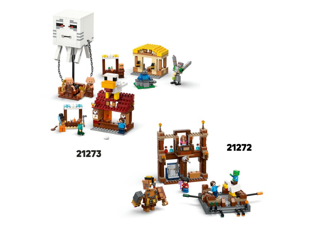 - Hračkársky kaštieľ z Minecraftu – Stavebnica obsahuje funkčný boxerský ring so zapisovateľmi skóre sediacimi pred fasádou kaštieľa s odnímateľnou truhlou a stojanom na zbrane