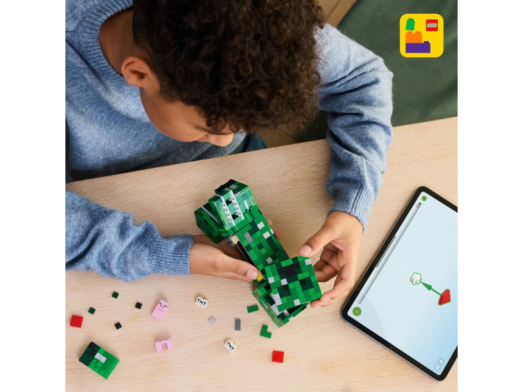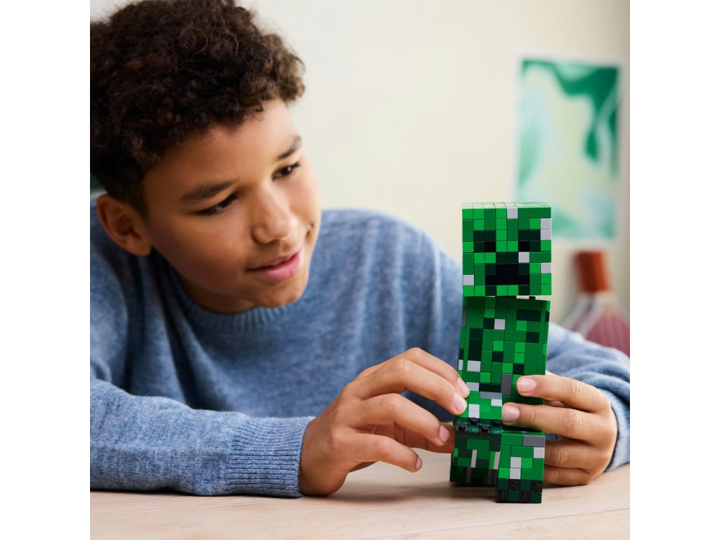LEGO® Minecraft® Creeper™ (21276) je veľká pohyblivá akčná figúrka, ktorú môžu deti stavať, hrať sa s ňou a potom si ju vystaviť, aby ju mohlo obdivovať celé okolie. Táto ikonická dekorácia podľa videohry bude ideálnym darčekom na narodeniny, Vianoce alebo inú príležitosť pre deti od 10 rokov, ktoré milujú Minecraft. Táto zostaviteľná hračkárska verzia ikonického Creepera z Minecraftu meria vyše 21 cm na výšku. Má 4 pohyblivé nohy a polohovateľnú hlavu, ktorá sa hýbe do strán aj nahor a nadol.Nadvihnite prednú časť hlavy figúrky Creepera LEGO Minecraft a odhalíte vnútro s prvou verziou Creepera a prvok TNT. Ešte viac digitálnej zábavy čaká staviteľov v intuitívnej aplikácii LEGO Builder, kde môžu približovať a otáčať modely v 3D a sledovať svoj pokrok. Model obsahuje 665 dielikov.