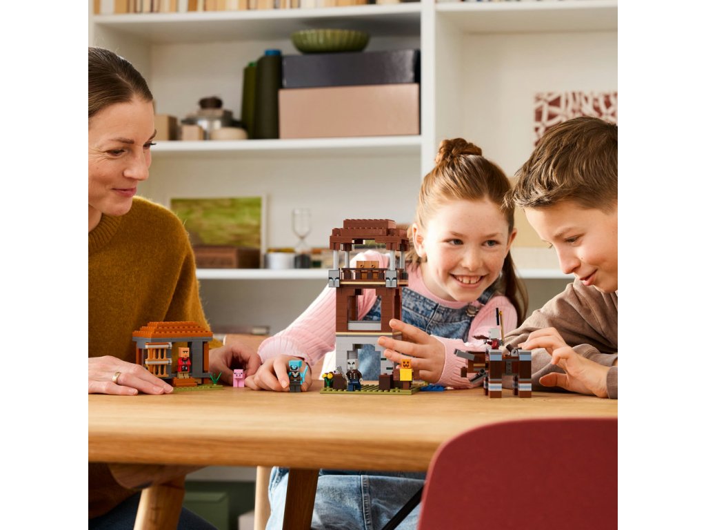 - Bitka v dedine LEGO® Minecraft® – Základňa plieniteľov a Ničiteľ pre deti je model na stavanie a hranie plný minecraftovej akcie a je skvelý pre chlapcov a dievčatá od 9 rokov