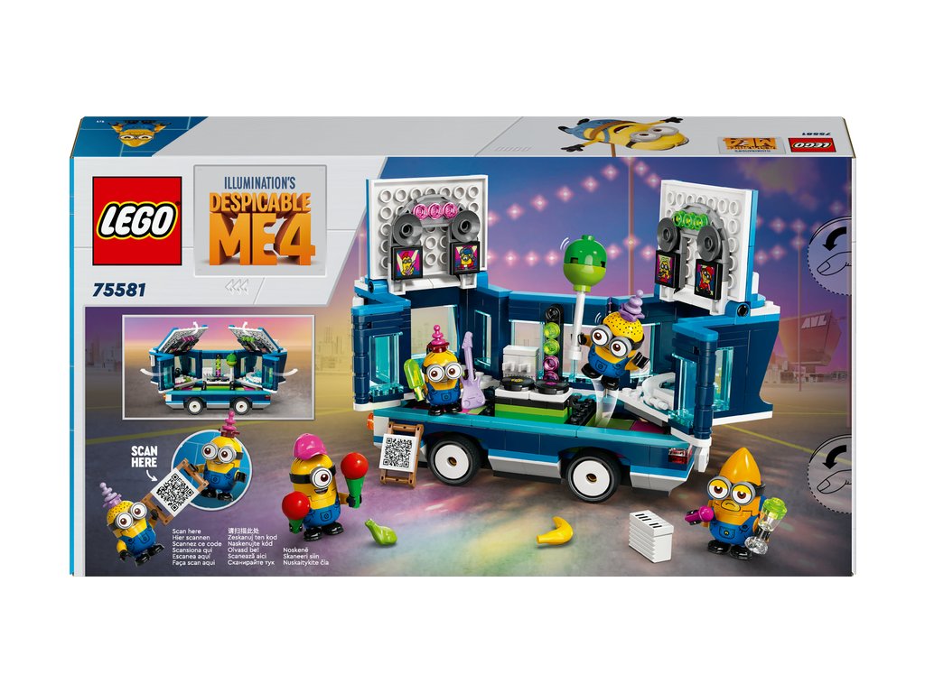 Doprajte fanúšikom hračiek s Mimoňmi a deťom, ktoré milujú autá poriadnu zábavu s touto stavebnicou 2 v 1 LEGO® Ja, zloduch 4 Mimoni a ich hudobný párty autobus (75581). Táto kreatívna stavebnica pre deti obsahuje hračkársky posuvný autobus, ktorýmožno otvoriť a odhaliť fantastickú párty stavebnicu s Mimoňmi. Stavebnica poslúži ako filmový darček pre chlapcov a dievčatá od 7 rokov a fanúšikov filmu Ja, zloduch 4 od štúdia Illumination.