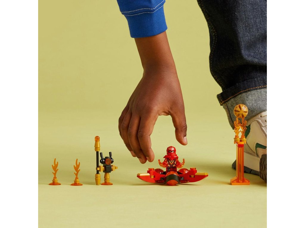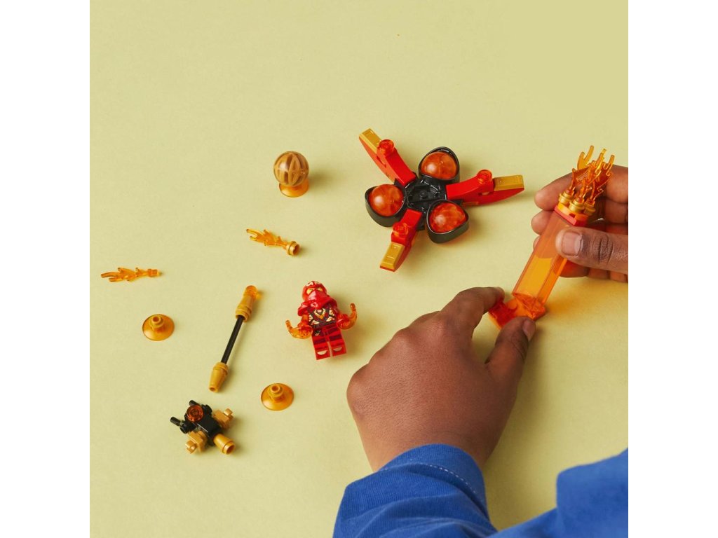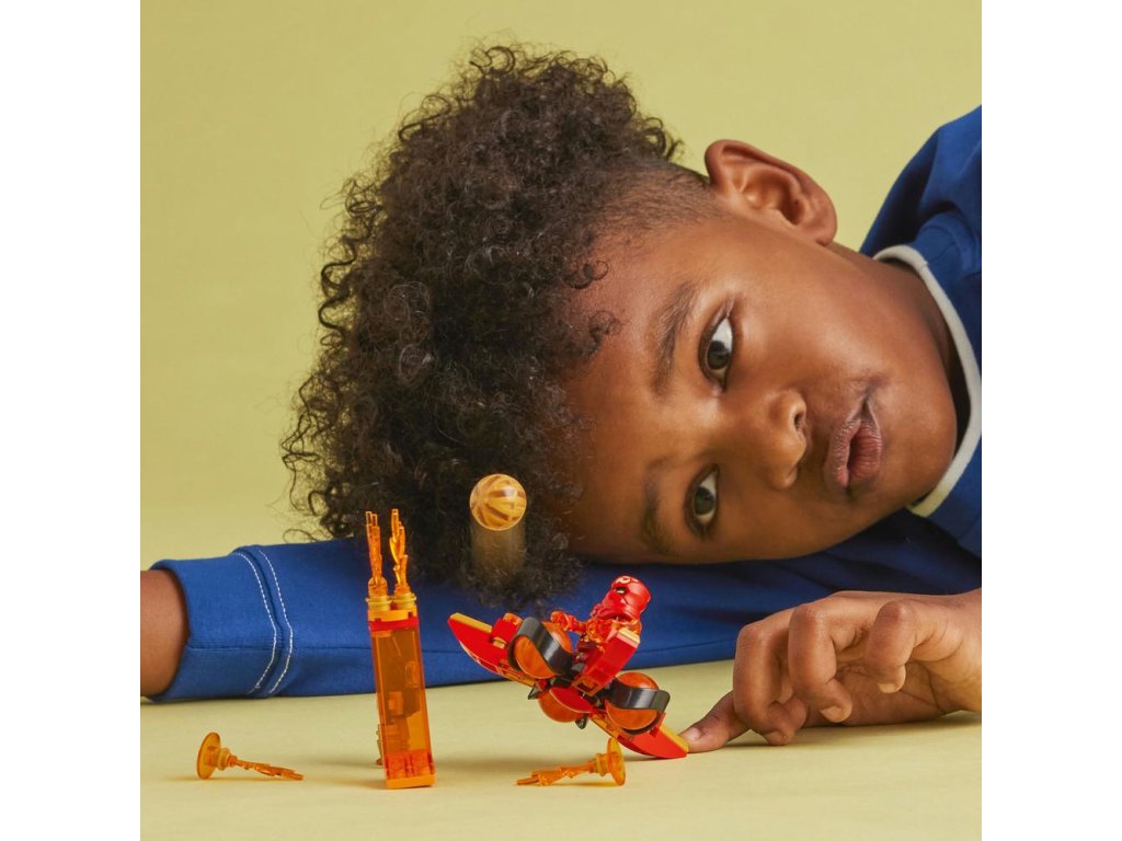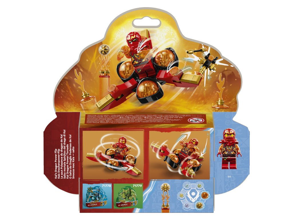 S touto akčnou hračkou Kaiov dračí Spinjitzu útok (71777) môžu fanúšikovia nindžov od 6 rokov natrénovať svojho hrdinu a pomôcť mu zlepšiť svoje Spinjitzu schopnosti poháňané dračou silou. Stavebnicu možno prevracať a deti si s ňou užijú neobmedzenú zábavu pri nekonečných hodinách tréningu, kedy môžu sami alebo s kamarátmi prinútiť Dračieho Kaia predvádzať skvelé triky. Pomôžte nindžovi rozvíjať svoje Spinjitzu schopnosti Deti môžu umiestniť Dračieho Kaia do vrtule, tľapnúť ho po ramene a sledovať, ako predvedie parádne salto vzad. Kai sa musí vyhnúť ohnivým prekážkam, zvíťaziť nad figúrkou Cisárskeho droida a získať cenný prvok zlatého dračieho energetického jadra z hornej časti horiaceho držiaka. K dispozícii je aj oranžový prvok dračej sily a deti si môžu zozbierať 4 ďalšie prvky v rôznych farbách v iných stavebniciach NINJAGO®. Zábavný digitálny zážitok pre fanúšikov LEGO® Aplikác
