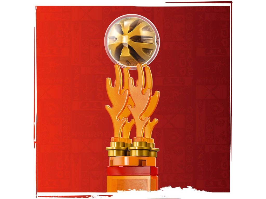- Nindžovská odmena – Táto odolná stavebnica obsahuje aj ohnivý držiak so zberateľským prvkom ohnivého dračieho energetického jadra, ktorý musí Kai získať, a 2 prekážky.